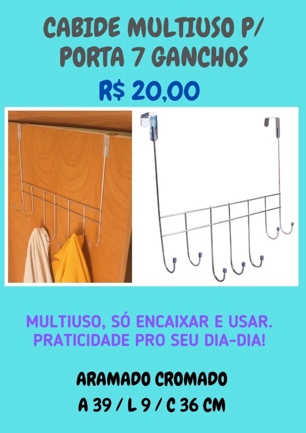 Cabide multiuso para porta 7 ganchos, São Bernardo do Campo. Jr Mix Variedades