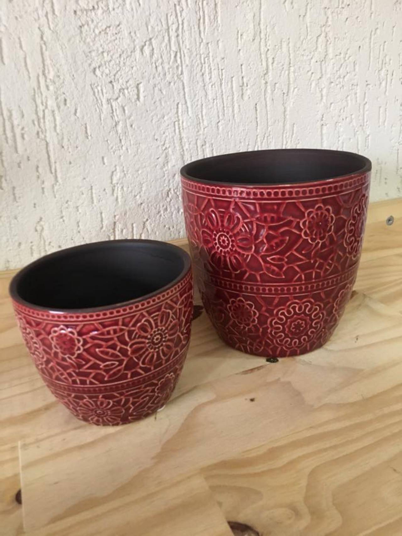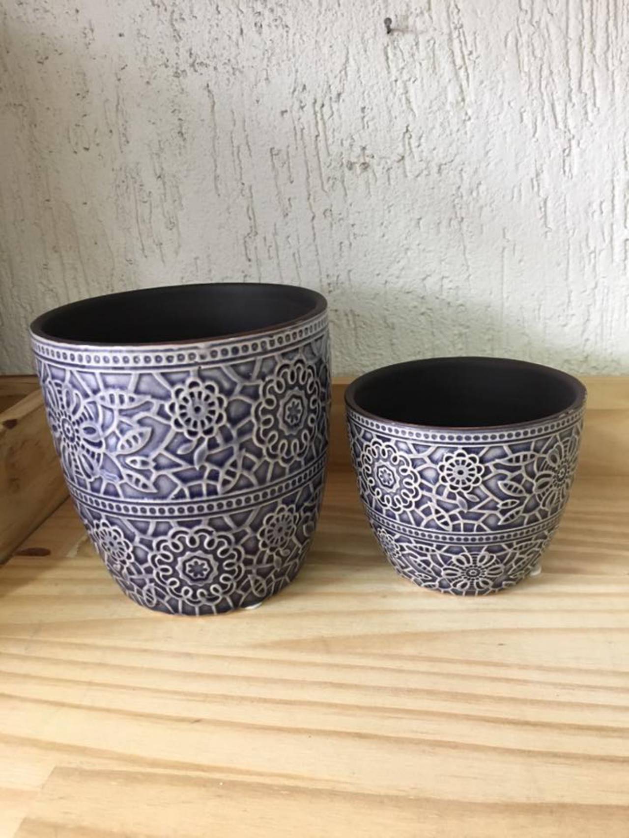 Jogo de vasinhos decorados, em cerâmica