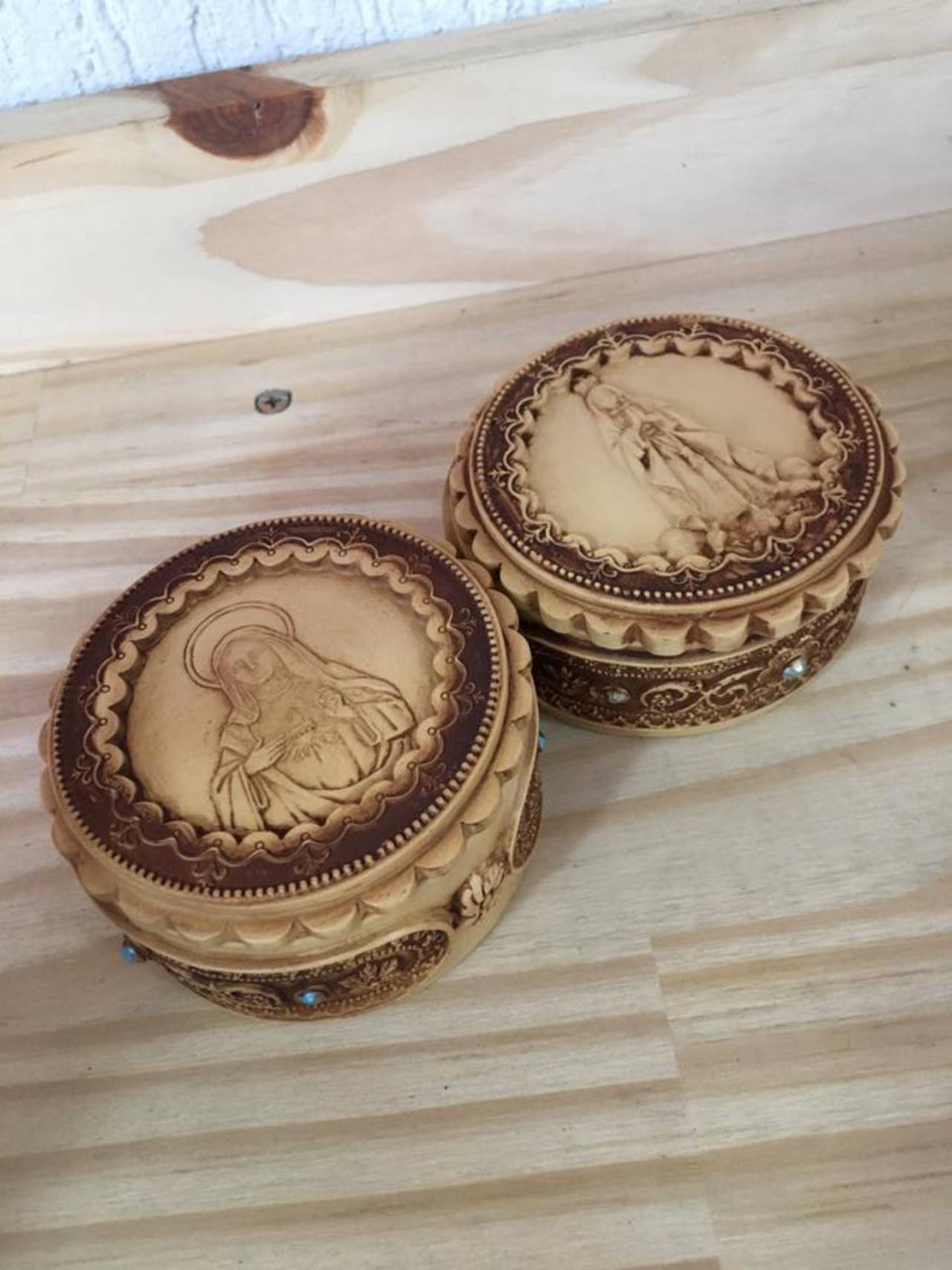 Porta Joia com tema religioso, em resina.