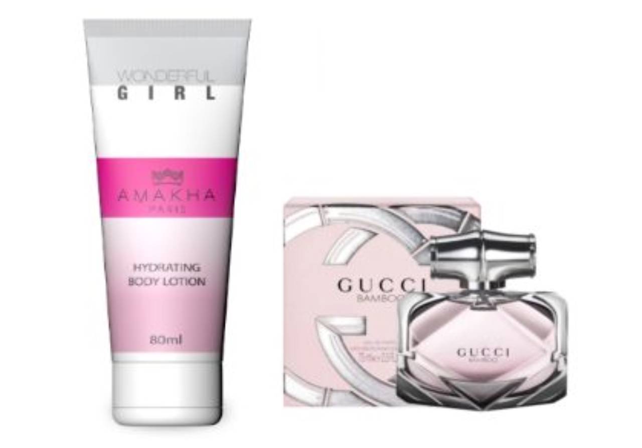 Essencia importada Gucci O creme hidratante Wonderful Girl da Amakha é inspirado no perfume importado Gucci Bamboo da Gucci, um hidratante especial onde sua fragrância traduz a essência do caráter da mulher multifacetada de hoje: mãe, esposa, profissional, mulher que precisa de liberdade para atender seu lado sensual e trazer de volta o romantismo.