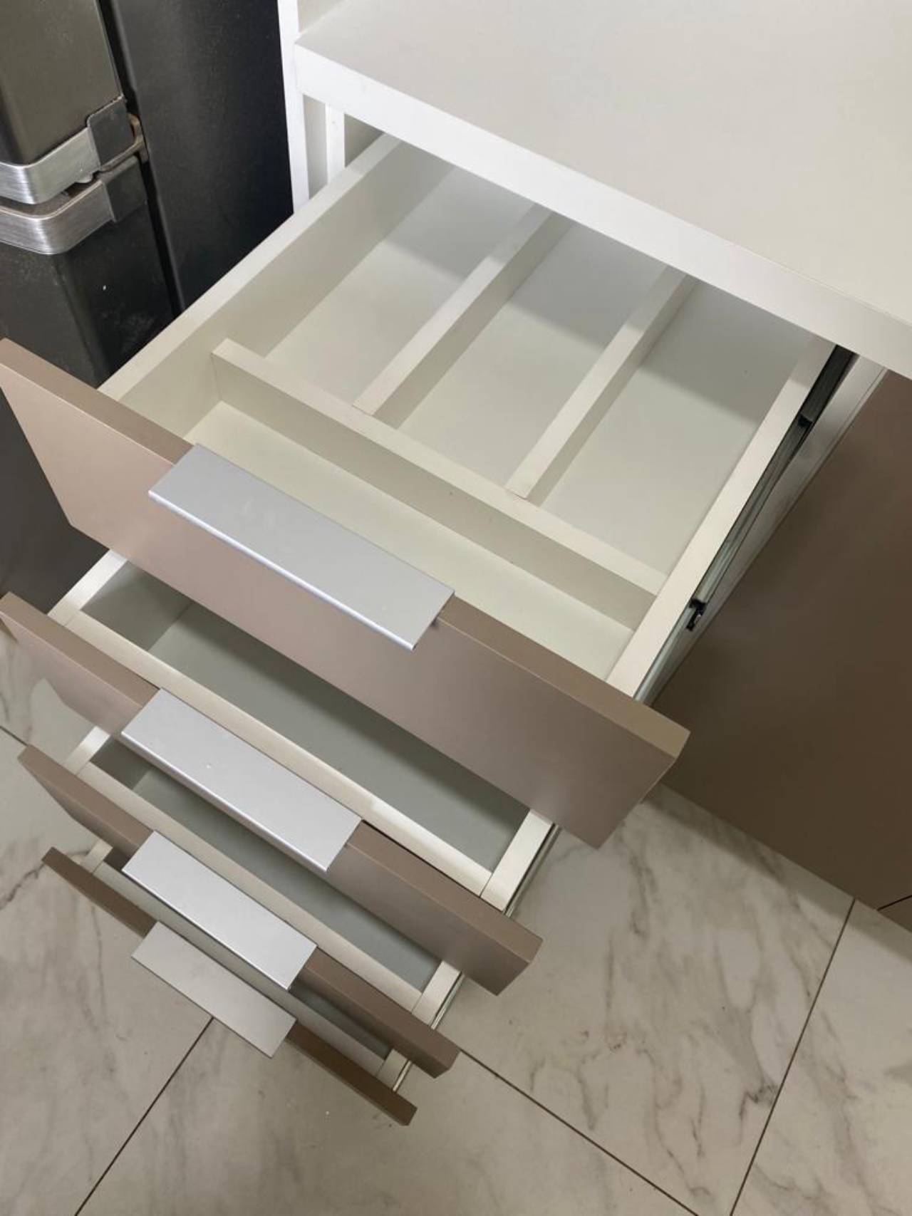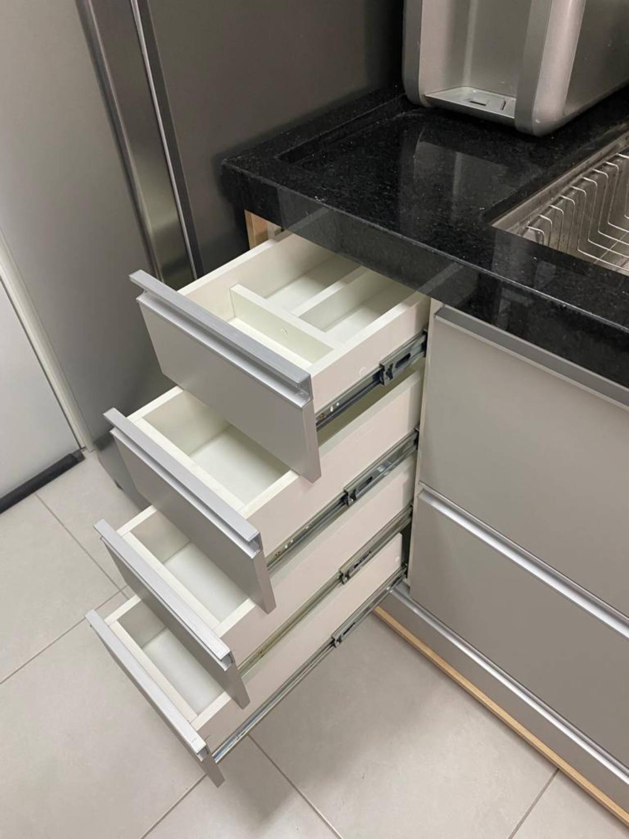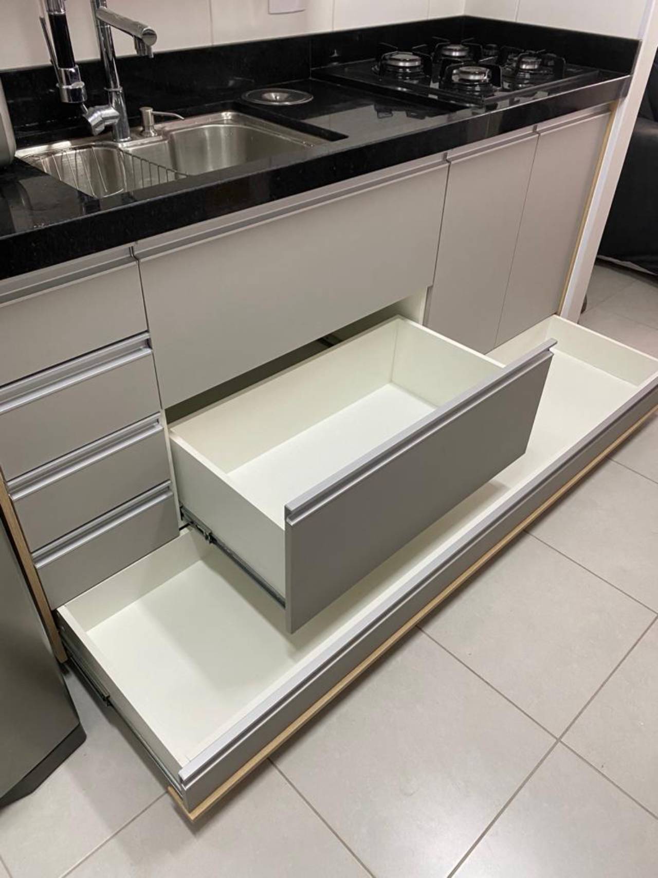 - Funcionalidade: Integração de soluções práticas, como gavetas com amortecimento, sistemas de fechamento suave, organizadores internos para utensílios e eletrodomésticos embutidos.
