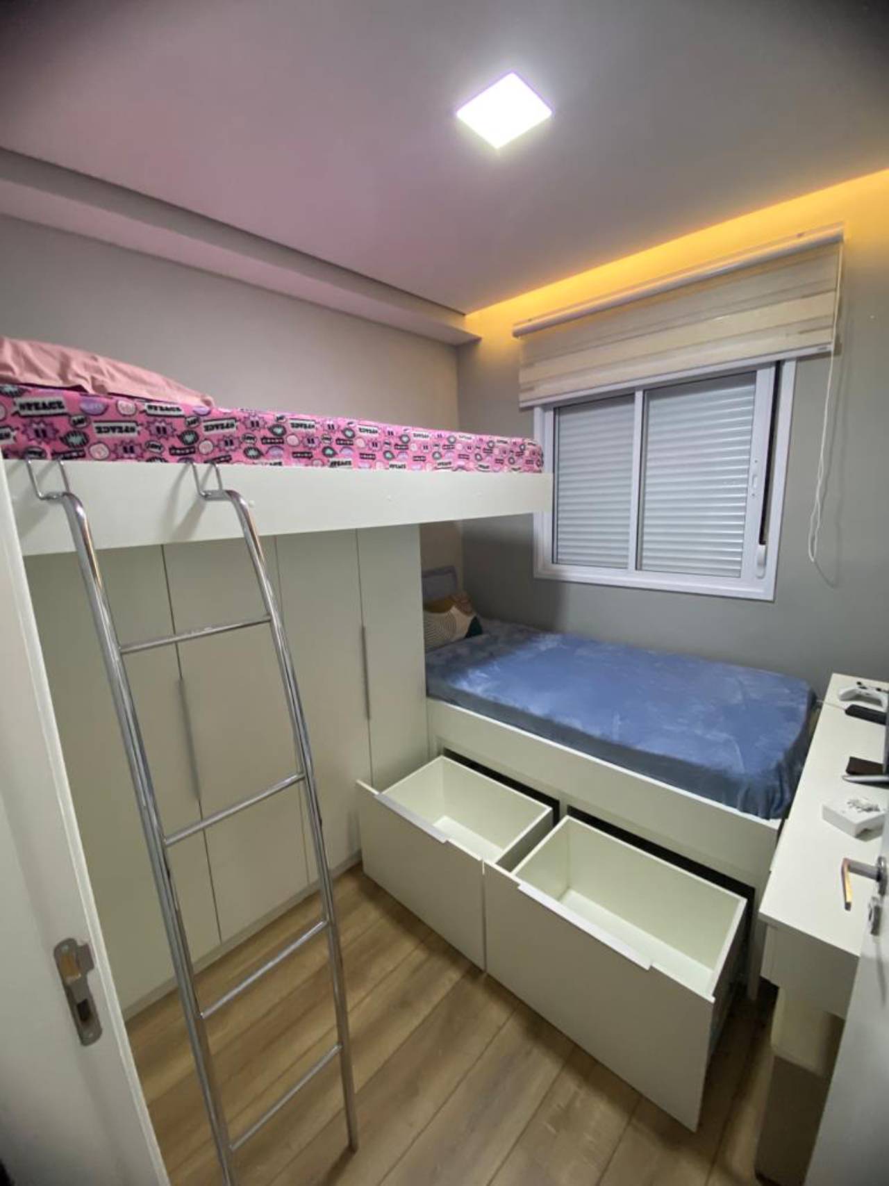 - Design Personalizado: Móveis sob medida que incluem guarda-roupas, cabeceiras, mesas de cabeceira, painéis para TV e prateleiras, todos projetados para maximizar o espaço e se adaptar ao estilo do ambiente.