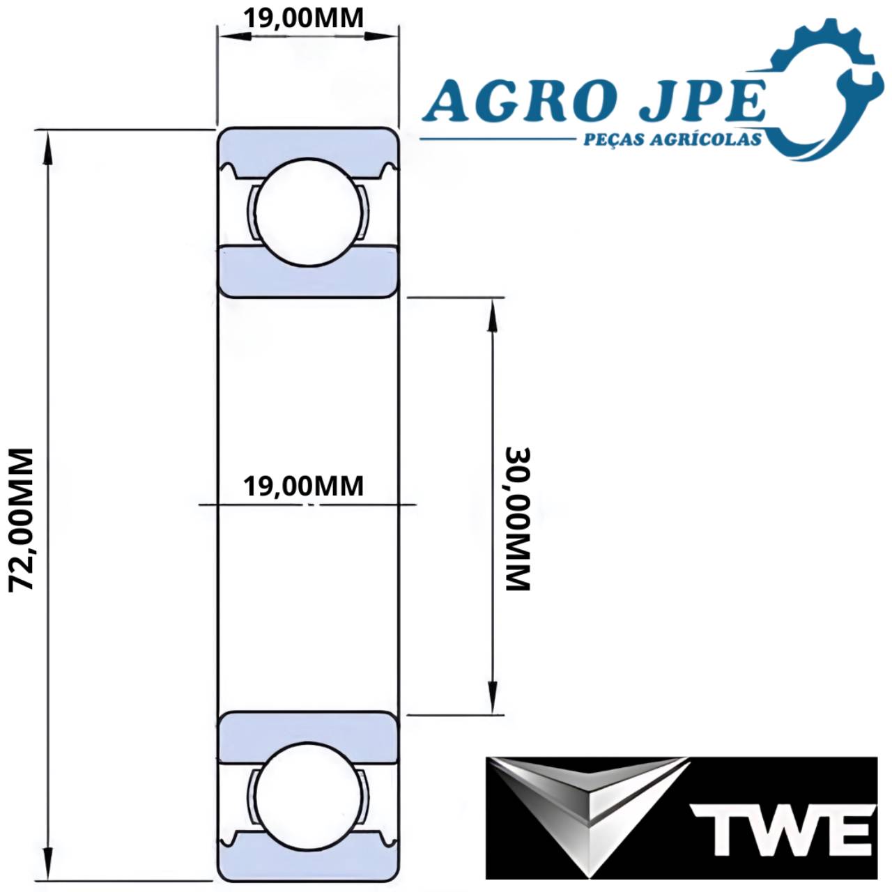 - Largura (B): 19 mm