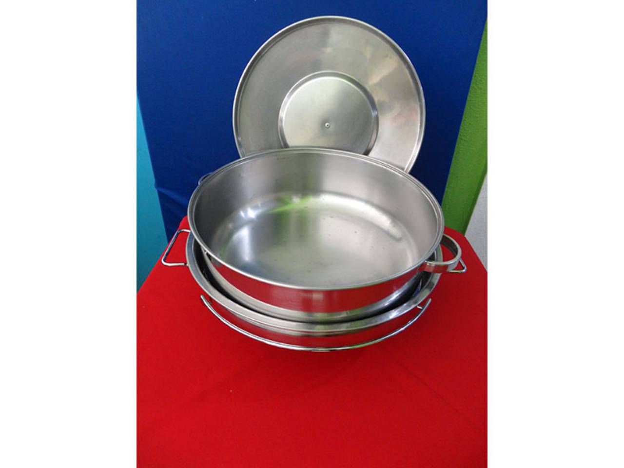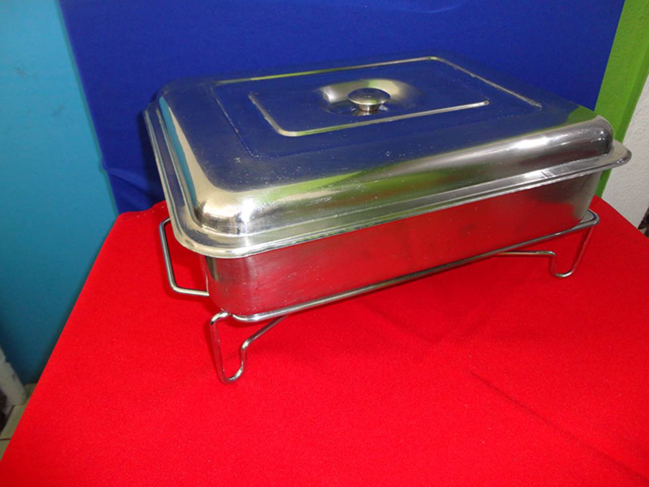 Produtos para buffet: mesas, pranchões, cadeiras, toalhas, pratarias, talheres, copos, taças, rechauds, travessas, fogões, panelas, caixas térmicas, xícaras, samovard etc.