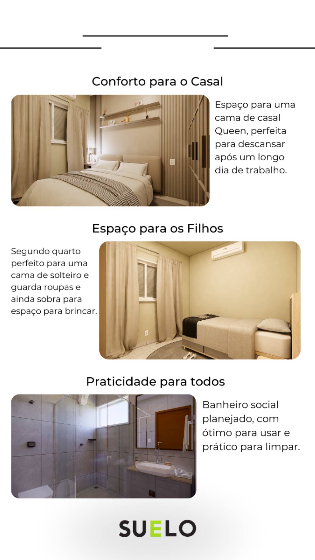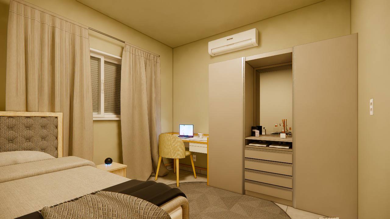 Espaço planejado para acomodar uma cama Queen, proporcionando o descanso ideal para recuperar as energias com conforto e privacidade.
