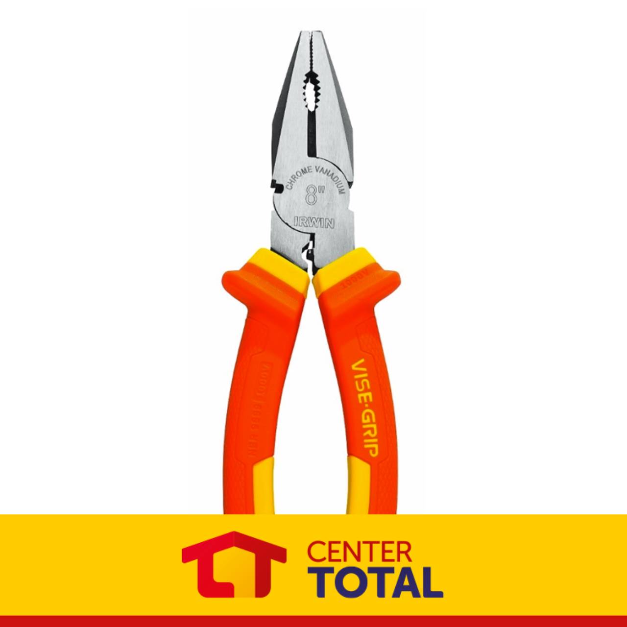 Alicate modelo Universal Profissional, de 8" da Irwin, linha Vise-Grip. Cabo reforçado e ergonômico.