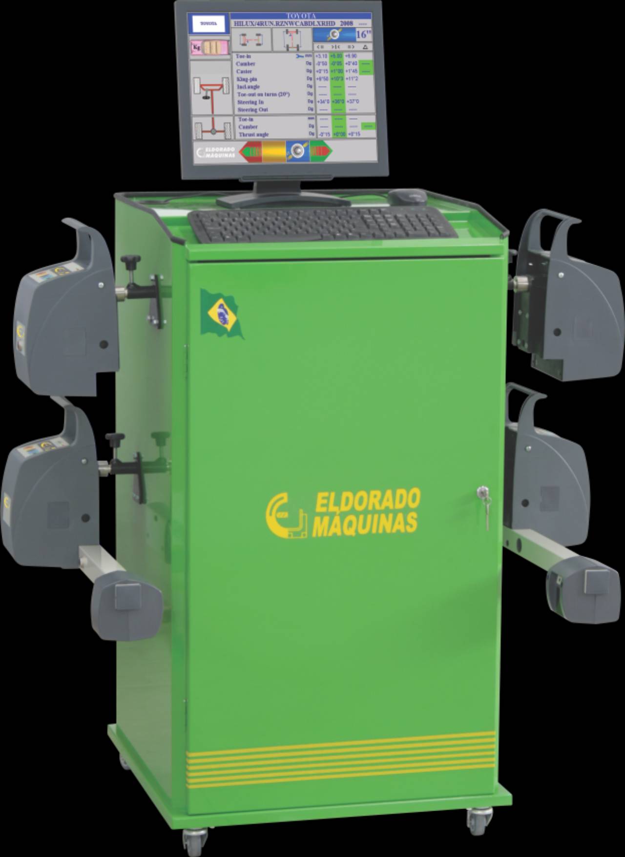 Equipamento Digital de Alta Precisão: Sistema computadorizado que faz a leitura exata do ângulo das rodas em relação ao solo e à carroceria.