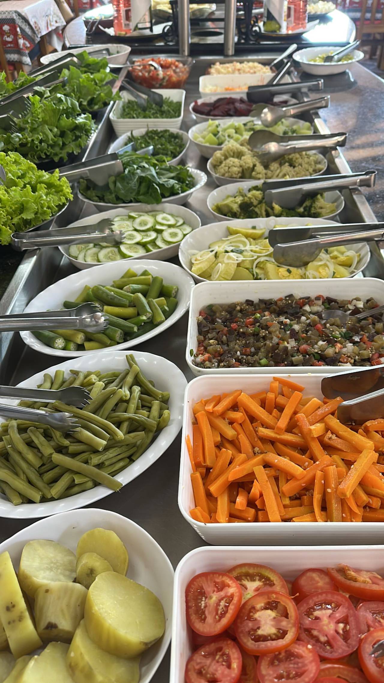 Seja para quem busca uma alimentação mais saudável ou para quem gosta de compor o prato com cores e texturas, nossas saladas são um verdadeiro destaque no buffet. Mais do que acompanhamentos, são protagonistas de uma refeição nutritiva e saborosa.