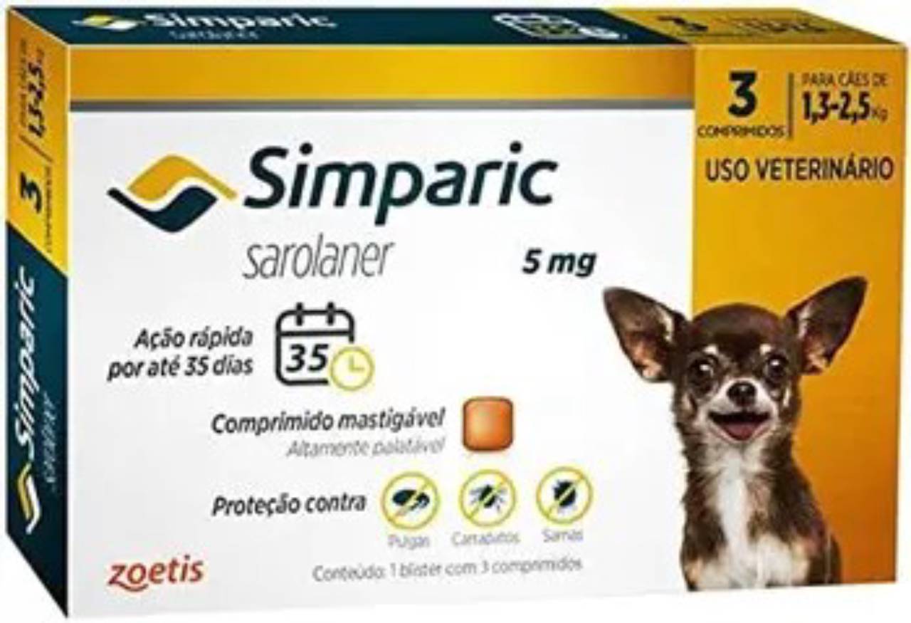 Simparic 5mg: Proteção Eficaz Contra Pulgas e Carrapatos para Cães de Pequeno Porte - São Manuel, SP