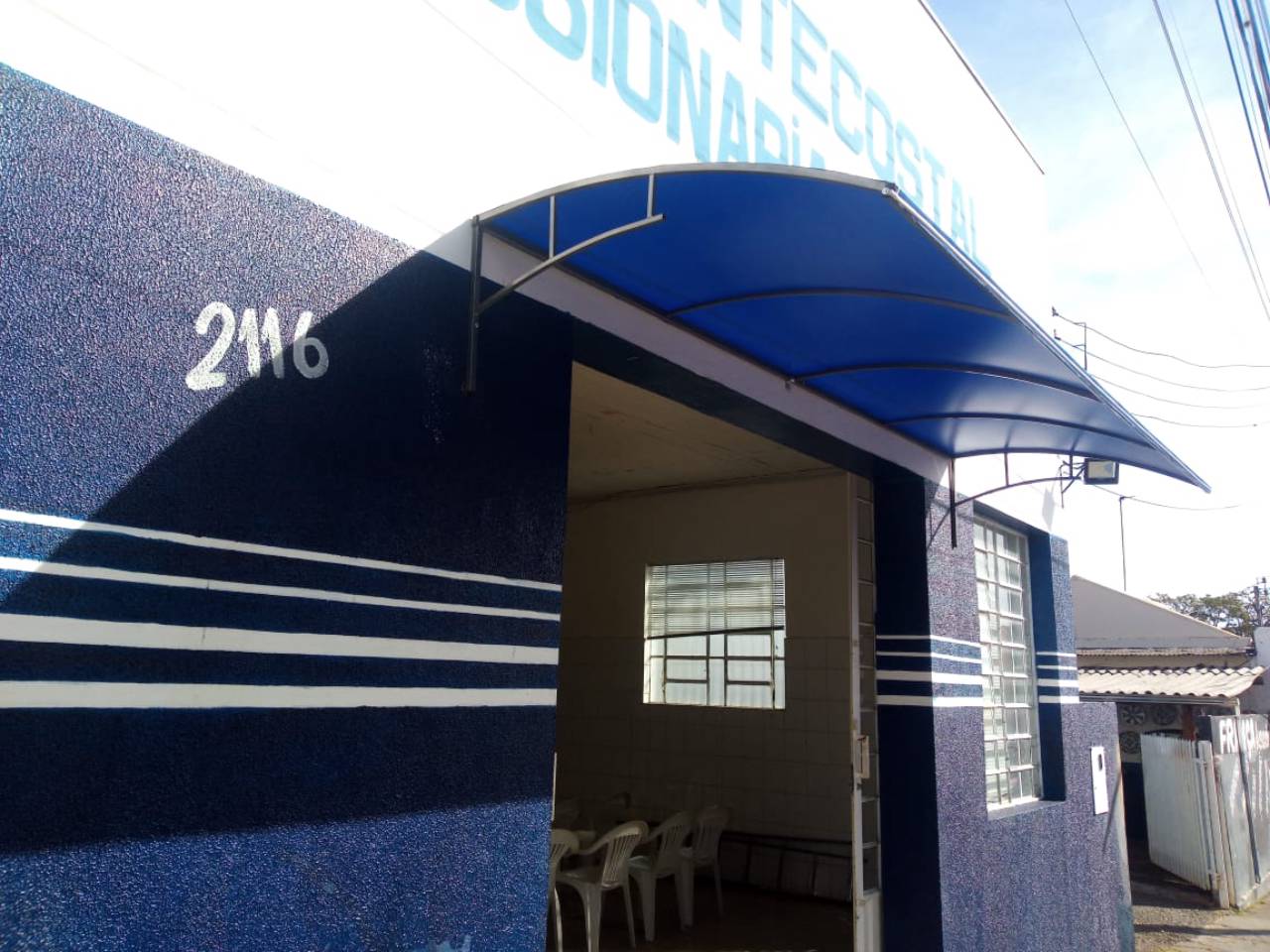 - Toldo fixo de lona com/estrutura metálica