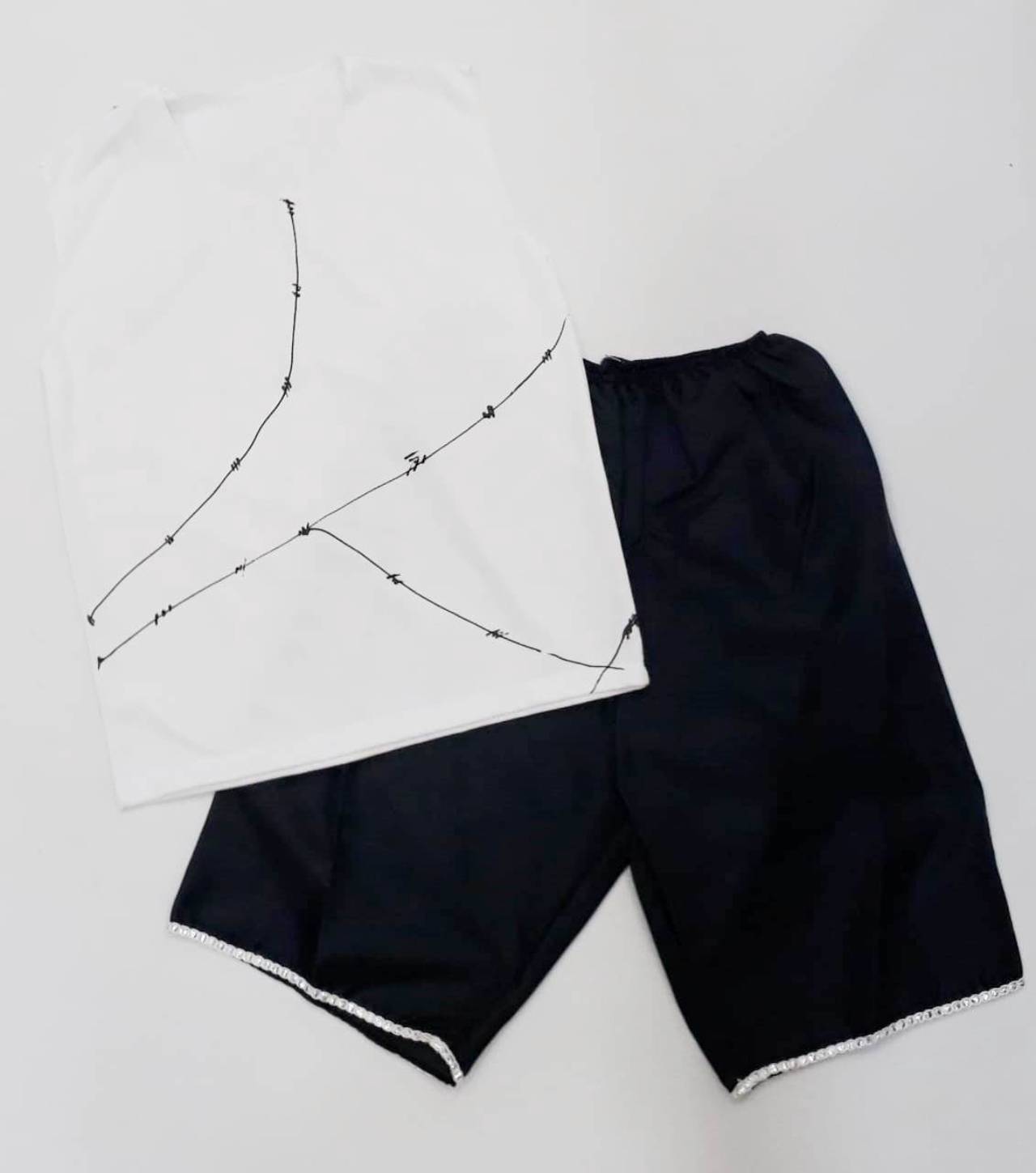 Camiseta em helanca, bermuda em bember.
