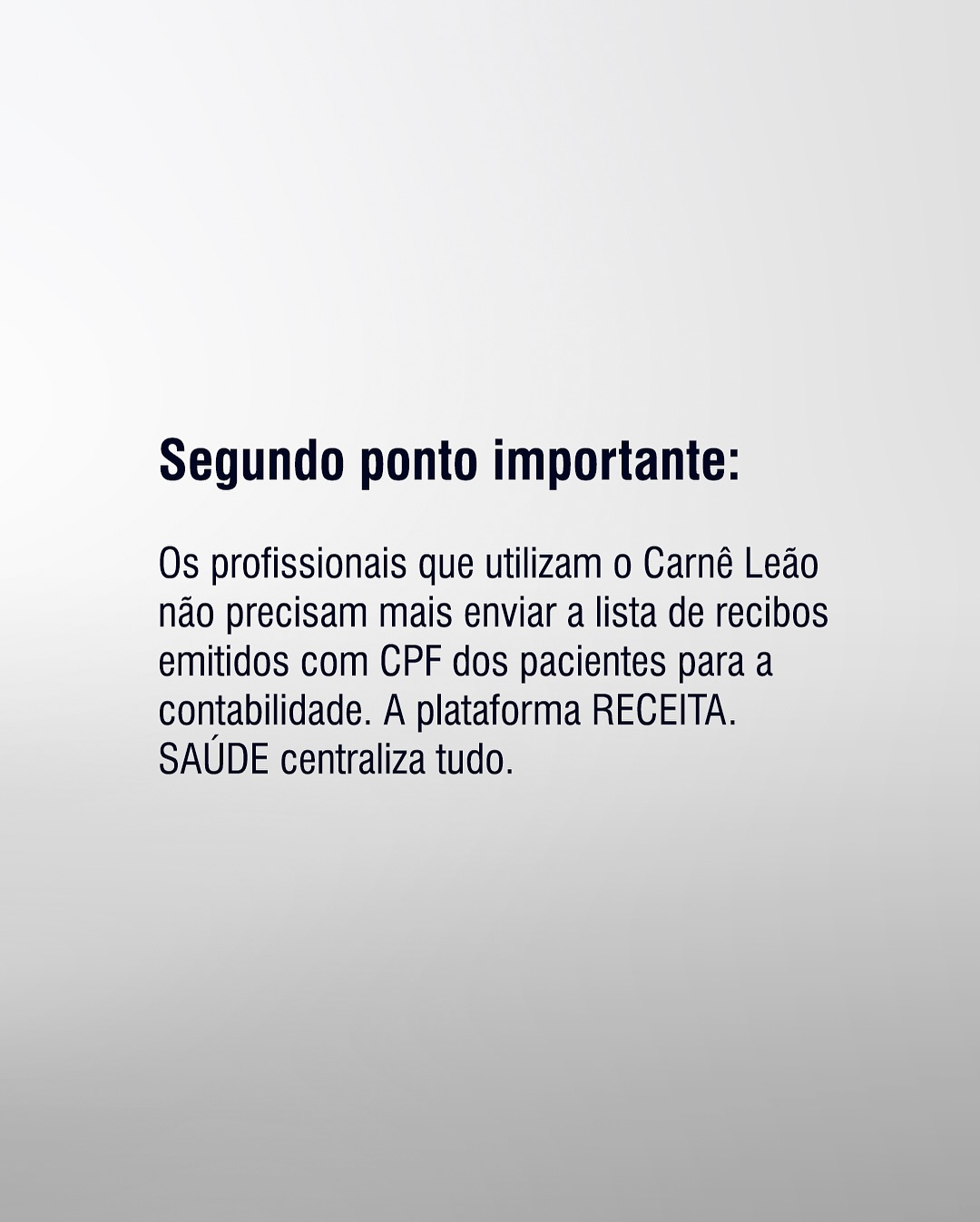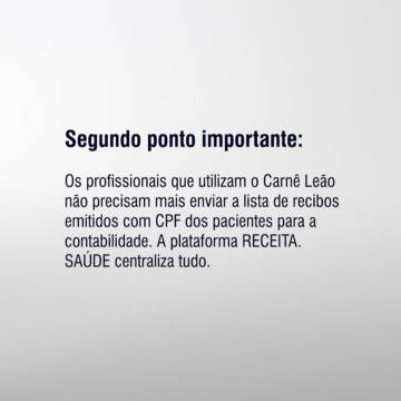 2. Simplificação para o Carnê-Leão: Profissionais que fazem uso do Carnê-Leão não precisarão enviar a listagem dos recibos emitidos (com CPF dos pacientes) ao contador, pois a plataforma já consolidará essas informações automaticamente.