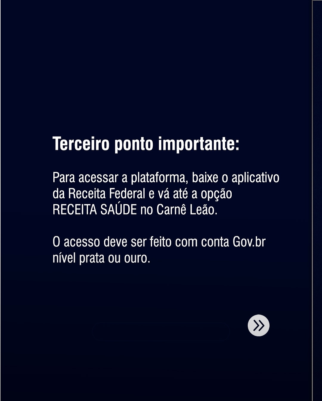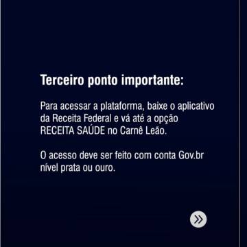 3. Acesso à Receita Saúde: Para acessar, baixe o aplicativo da Receita Federal e vá na opção “Receita Saúde” dentro do Carnê-Leão. O login precisa ser feito com uma conta Gov.br nível prata ou ouro. Caso você deseje delegar essa tarefa a uma funcionária, ela também precisará ter um login Gov.br prata ou ouro.