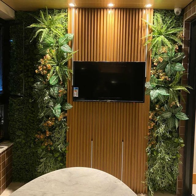 Quadros vivos, arranjos ornamentais e decoração de interiores com plantas permanentes (artificiais)