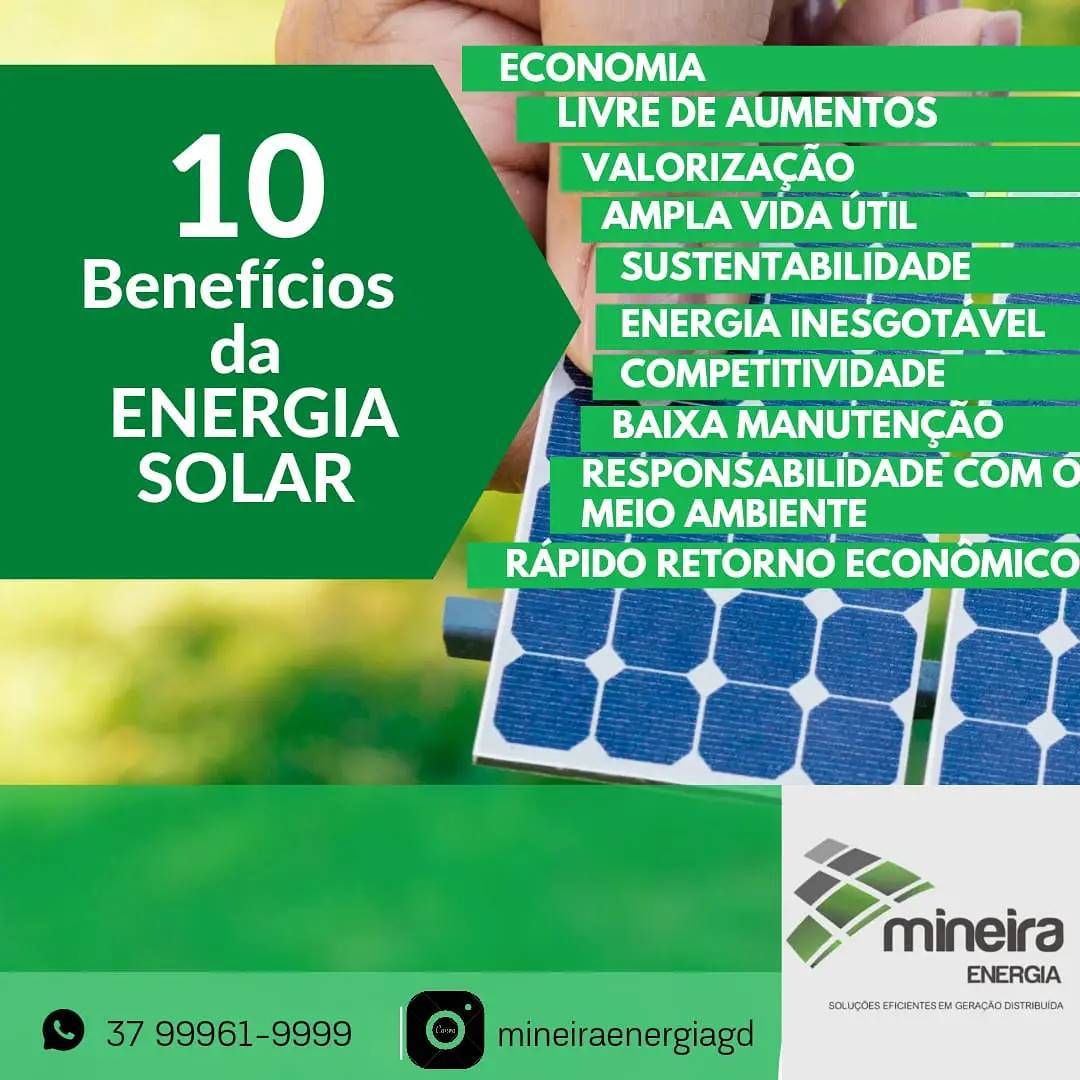 A Mineira Energia nasceu com o propósito de atender as necessidades econômicas da sociedade em que atua. Possui em seu portfólio de instalação de energia fotovoltaica de diversas unidades residenciais e comerciais, de diversos tamanhos, formas e conceitos. Tem como missão atender de maneira diferenciada a cada projeto, prezando a sustentabilidade e responsabilidade social. Nós acreditamos que um trabalho realizado com afinco torna-se muito mais que um trabalho e a Mineira Energia se orgulha do que faz e faz com amor e dedicação.