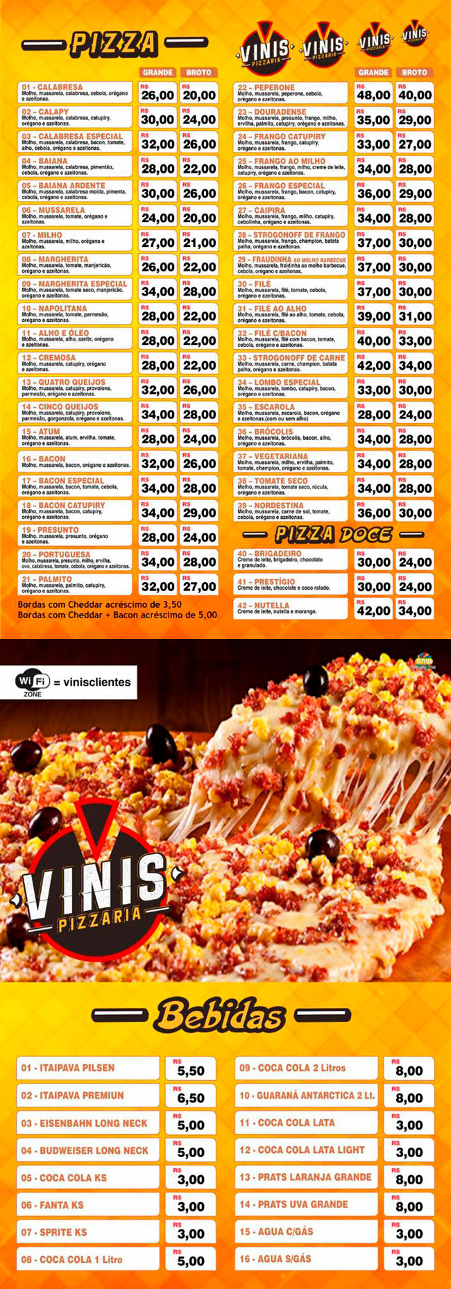 Vinis Pizzaria. Em pouco tempo conseguimos alcançar o status de uma das melhores pizzarias de Dourados, com um excelente atendimento e o melhor, um sabor irresistível. Ótima opção pra você que gosta de preços acessíveis e claro, um sabor de quero mais.