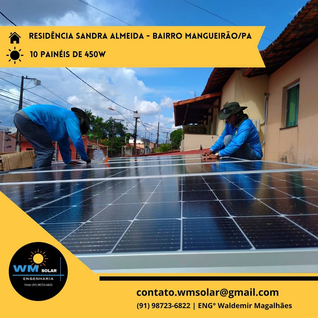 A empresa WM SOLAR ENGENHARIA, é uma empresa de serviços especializada em Geração, Venda, Financiamento, Instalação, Projeto, Homologação, Suporte e Manutenção em Sistema de Energia Solar Fotovoltaico. Temos a honra de oferecer aos nossos clientes a possibilidade de utilizar o poder do SOL, que é a maior fonte de energia do planeta. Somos representantes autorizados na região norte da BLUESUN SOLAR DO BRASIL que é uma das maiores distribuidoras e importadoras do país. Nossa empresa entra no mercado e se mantém firme com nossas parceiras , tendo como alicerce três pontos fundamentais: Menor custo do Mercado, Serviço de Qualidade e Suporte de Engenharia.