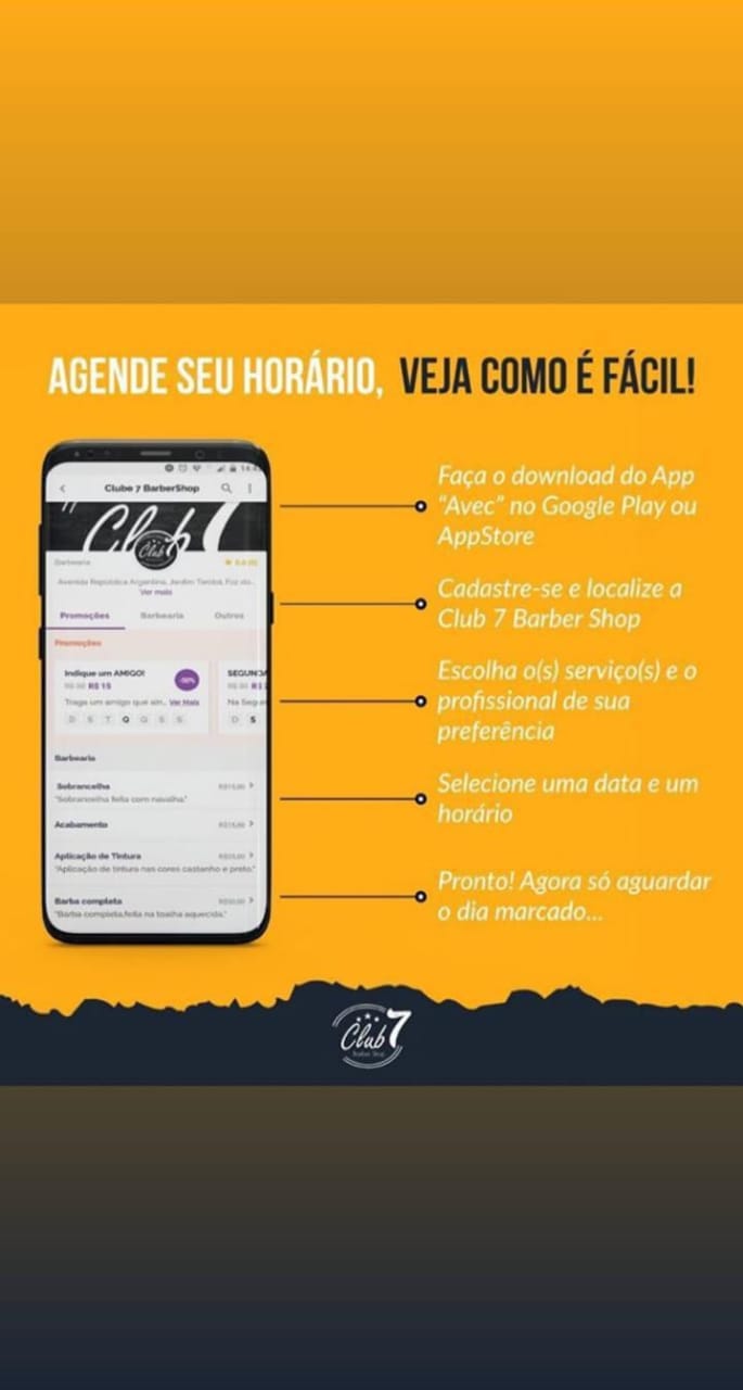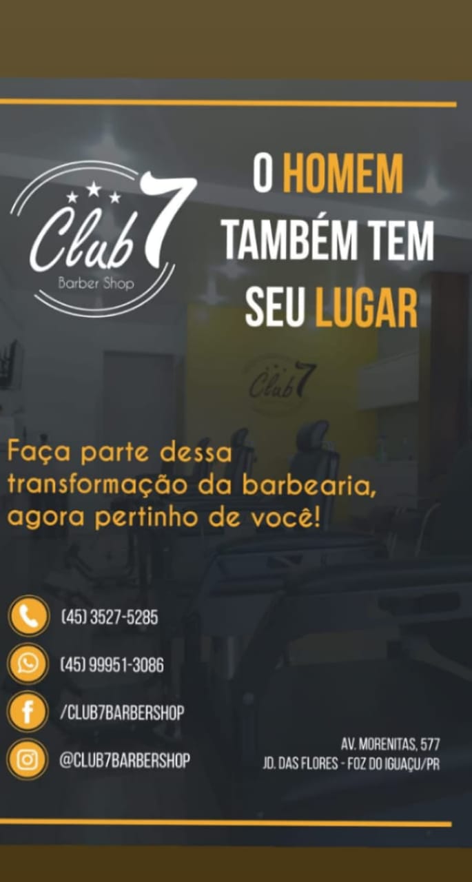 Olá! Nós somos a Club7 Barber Shop. Não somos "mais uma barbearia", somos a renovação do corte e do excelente atendimento em Foz do Iguaçu.