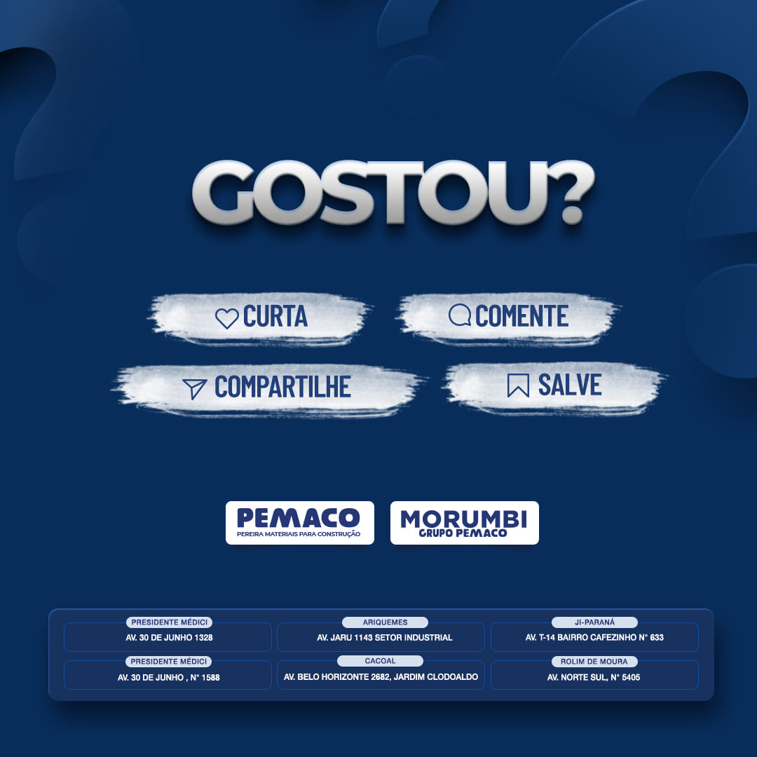 A PEMACO nasceu há mais de 40 anos, na cidade de Presidente Médici, Rondônia, através de nossa loja Matriz a Morumbi Materiais para construção. Ajudamos com muita competência, qualidade e responsabilidade, a construir a história desta maravilhosa cidade, e agora estamos chegando em Ariquemes, Cacoal, Rolim de Moura e Ji-Paraná para fazer parte dessas histórias também!
