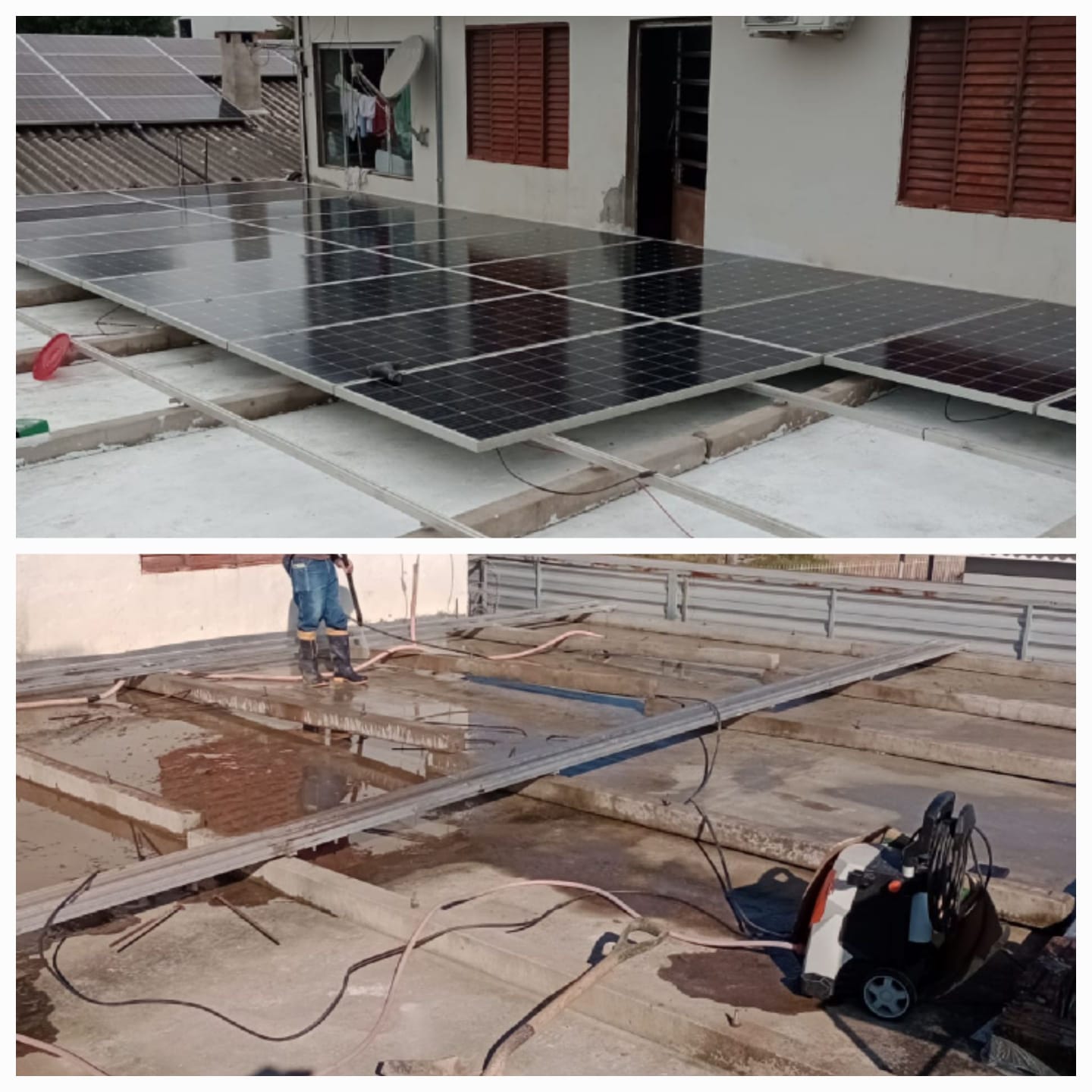 Limpeza de placas solares, garantindo eficiência e maior captação.
