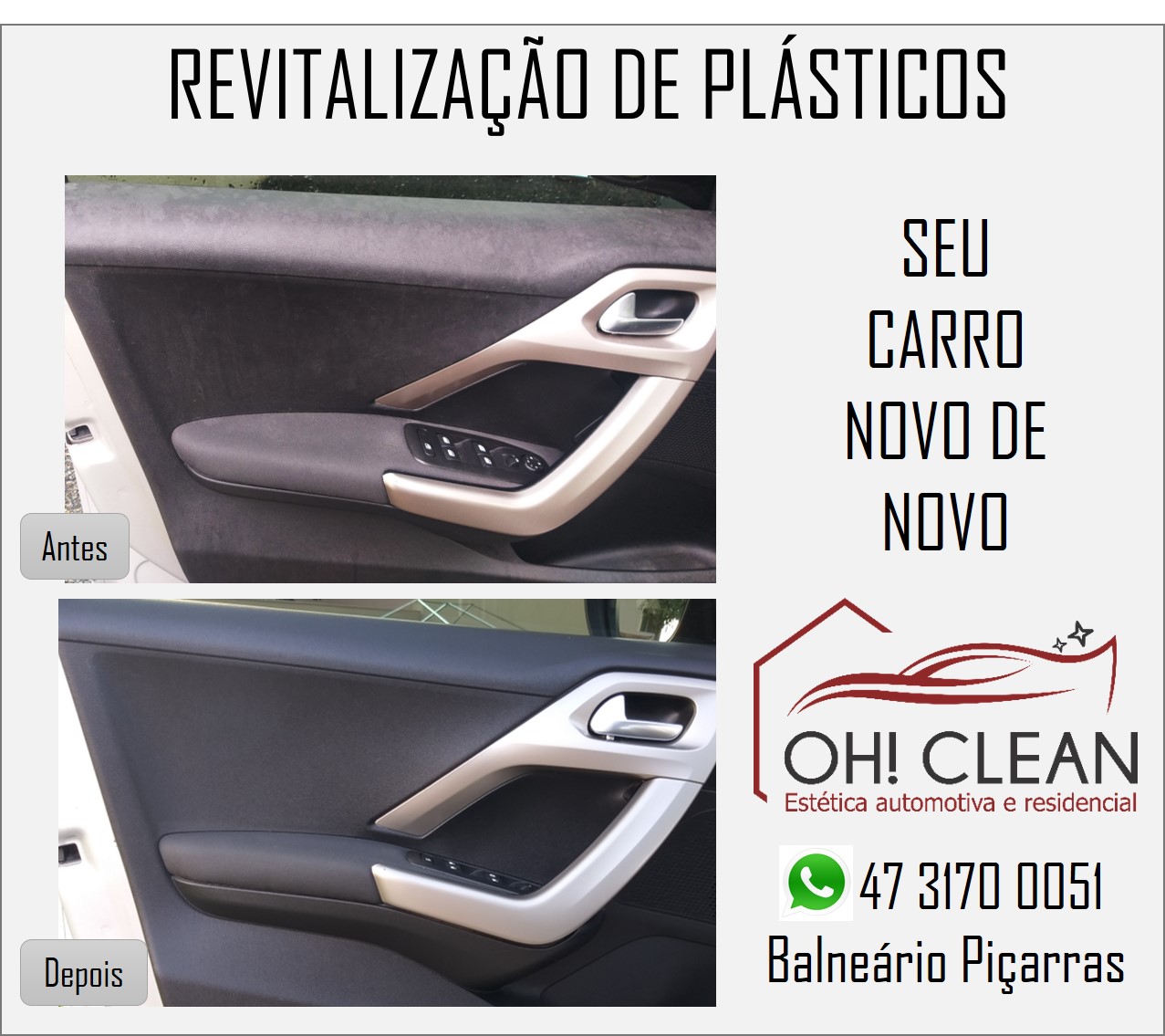 A empresa Oh Clean Estética Automotiva e Residencial nasceu da paixão que seus fundadores têm por servir bem e por entenderem que tudo o que conquistamos é fruto de muito trabalho e esforço, e por isso o zelo e tratamento adequado para sempre valorizar o seu bem. Por essa razão somos capazes de oferecer à você, nosso cliente, a melhor experiência em serviços de Estética Automotiva e Residencial em Balneário Piçarras.
