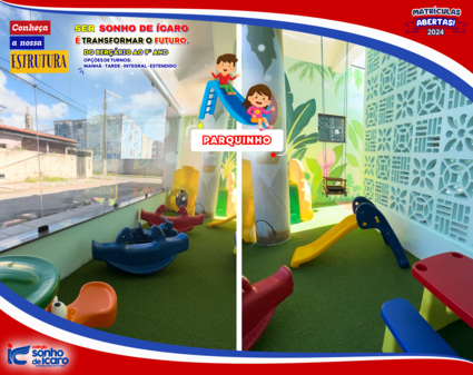 A característica principal de nosso colégio é a busca constante por métodos inovadores de ensino, sem deixar de lado nossos valores fundamentais e tradição. Com infraestrutura ampla, segura e acolhedora, metodologia de ensino ética e responsável em formar cidadãos, sistema integral de ensino e diferenciais que garantem uma formação integralizada em nossos alunos, o Sonho de Ícaro cresce ano após ano graças à dedicação diária de toda a nossa equipe e a confiança de todos os pais e alunos.