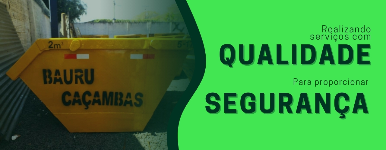 Há 16 anos no mercado, a Bauru Caçambas consciente da preservação do Meio Ambiente, oferece serviços específicos de coleta de entulhos e segue as normas estabelecidas por lei para destinar suas coletas aos Aterros devidamente regulamentados pelos Órgãos de Proteção ao Meio Ambiente.