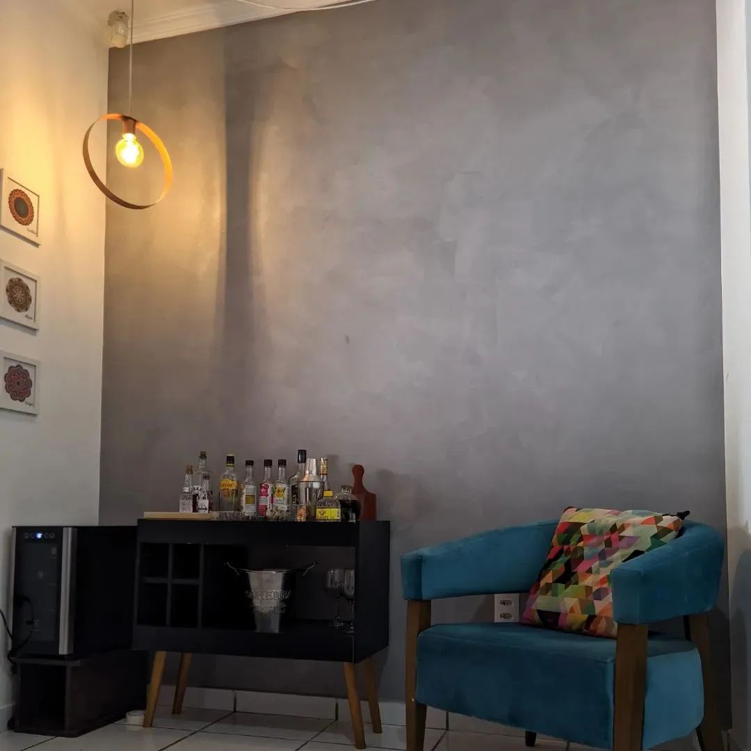 Já o cimento queimado rústico é feito com uma massa que produz um efeito manchado e rústico aos ambientes. Pode ser utilizado em superfícies de reboco, massa corrida, massa acrílica, gesso e drywall.