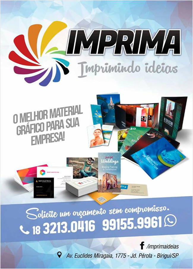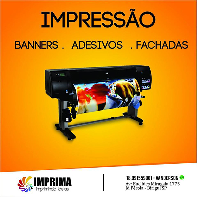 Imprima ideias, design gráfico, impressão digital, cartão de visita, convites de casamento, revistas, banner, adesivos, cartaz, fachadas, brindes e personalizados.
