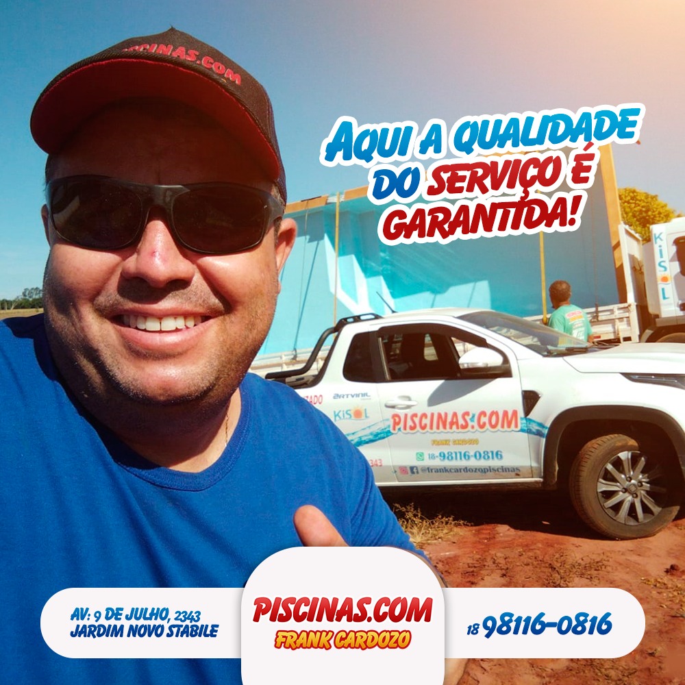 Venha fazer seu orçamento em construção de piscinas, limpeza e manutenção, temos todos os produtos para sua piscina. Conheça o serviço do Frank, o melhor produto e o melhor profissional de Birigui e região. Atendemos todos os dias com plantão 24 horas. Forma de pagamento: dinheiro, cartão, cheque. DIVIDIMOS EM ATÉ 24 x.