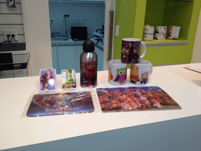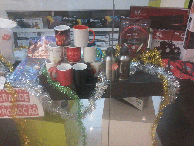 - produtos personalizados (canecas, squeezes, mouse pads, quebra-cabeças, chinelos, capas para celulares)
