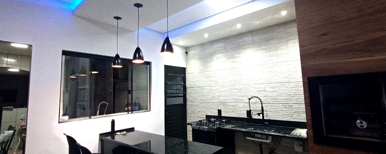 Forros de Gesso: Instalamos forros de gesso acartonado (drywall) e gesso liso tradicional, ideais para embutir iluminação (sancas, spots), melhorar o isolamento termoacústico e nivelar tetos.
