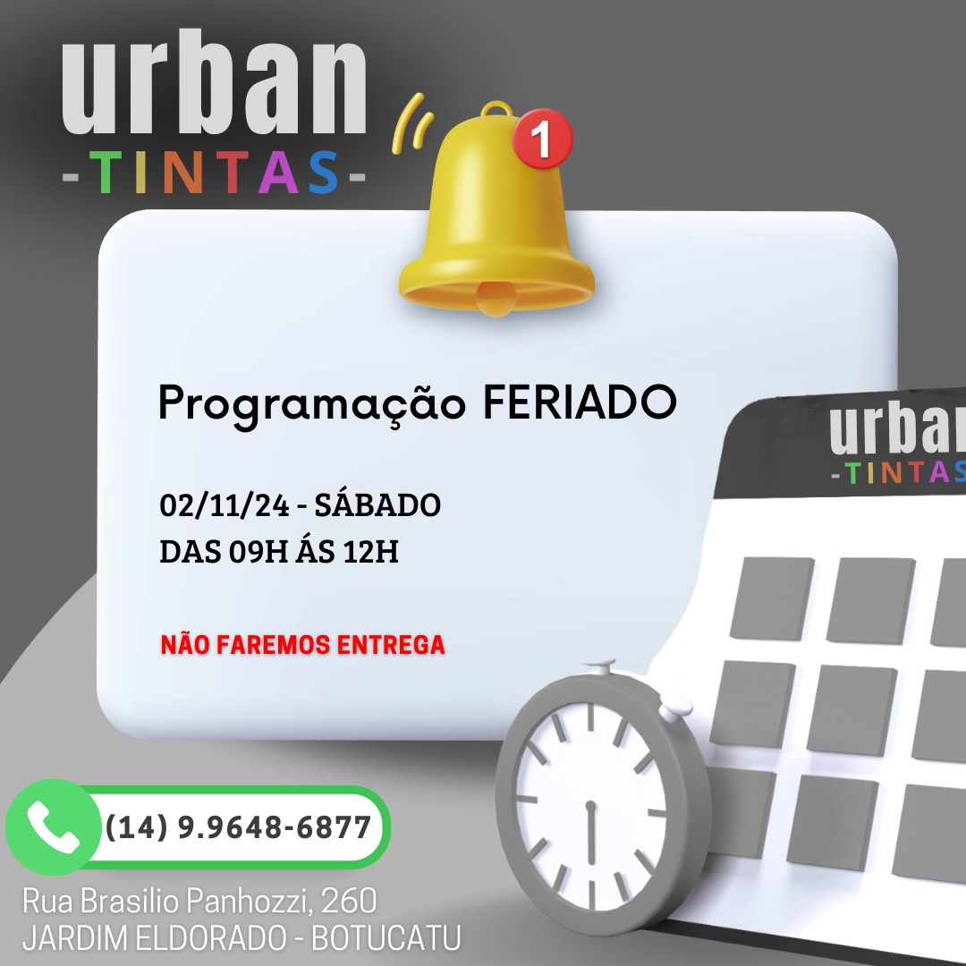 A Urban - Tintas é sua especialista em tintas e revestimentos de alta performance em Botucatu e região. Há anos, somos referência por oferecer um portfólio completo de soluções para pintura, seja para obras residenciais, comerciais ou automotivas. Trabalhamos com uma vasta gama de pigmentos, colorantes e tinturas, como tintas acrílicas laváveis para ambientes internos, esmaltes sintéticos para madeira e metal, texturas e grafiatos com efeitos decorativos, além de tintas automotivas de alta qualidade (poliéster, poliuretano) para retoques e pintura geral.
