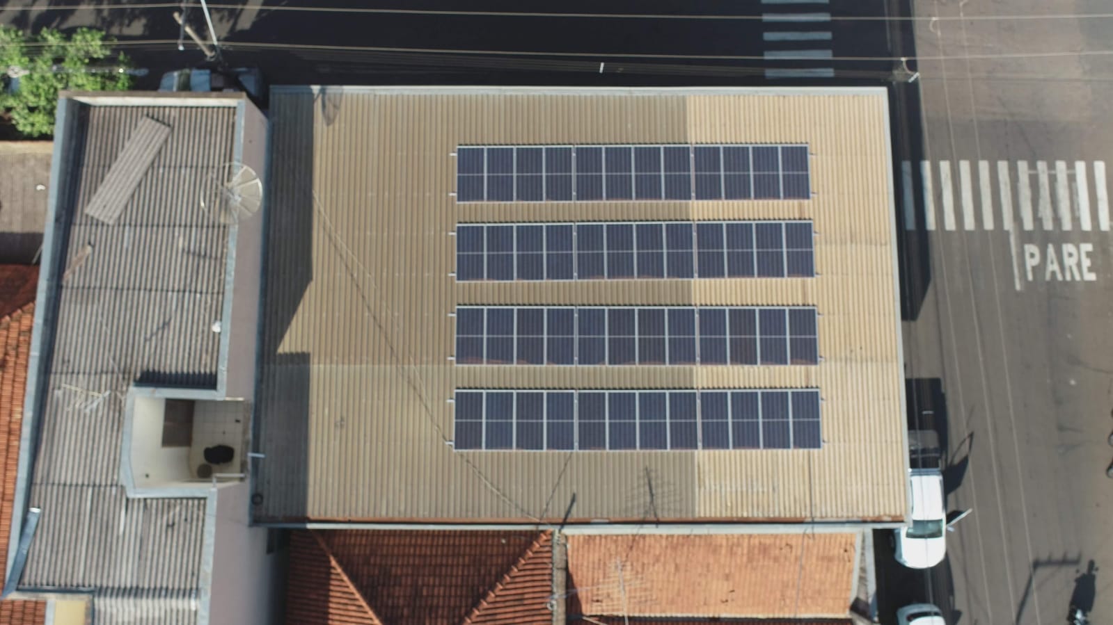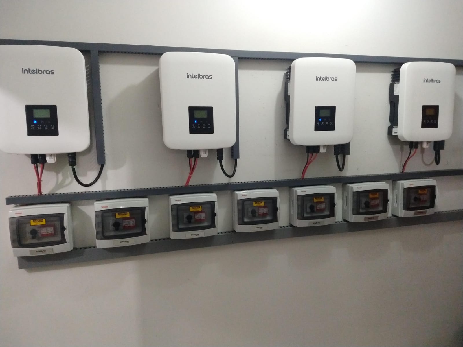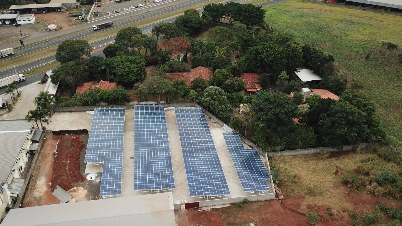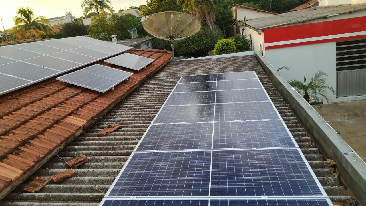 Um sistema de energia solar fotovoltaica é composto por painéis solares, inversores e outros componentes.