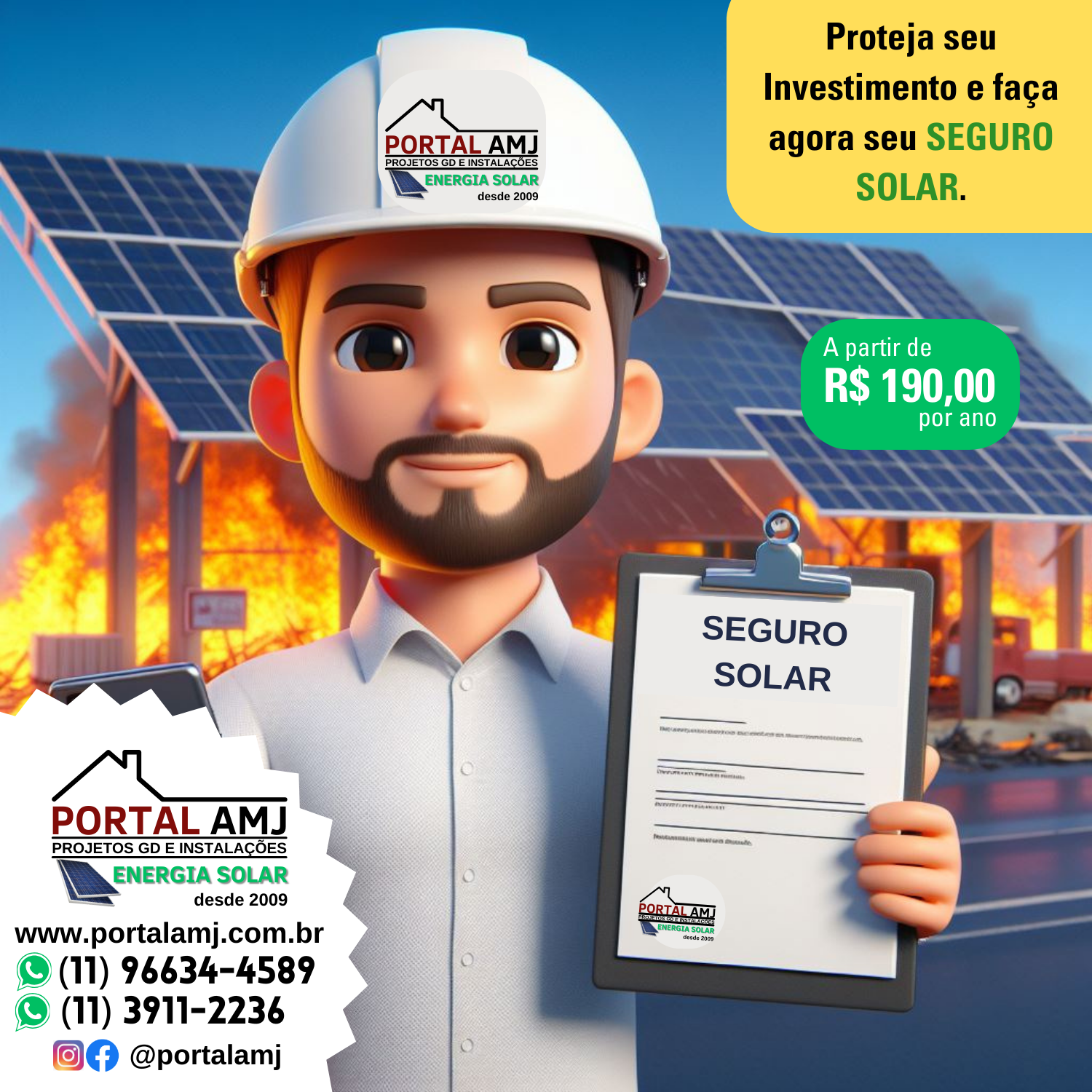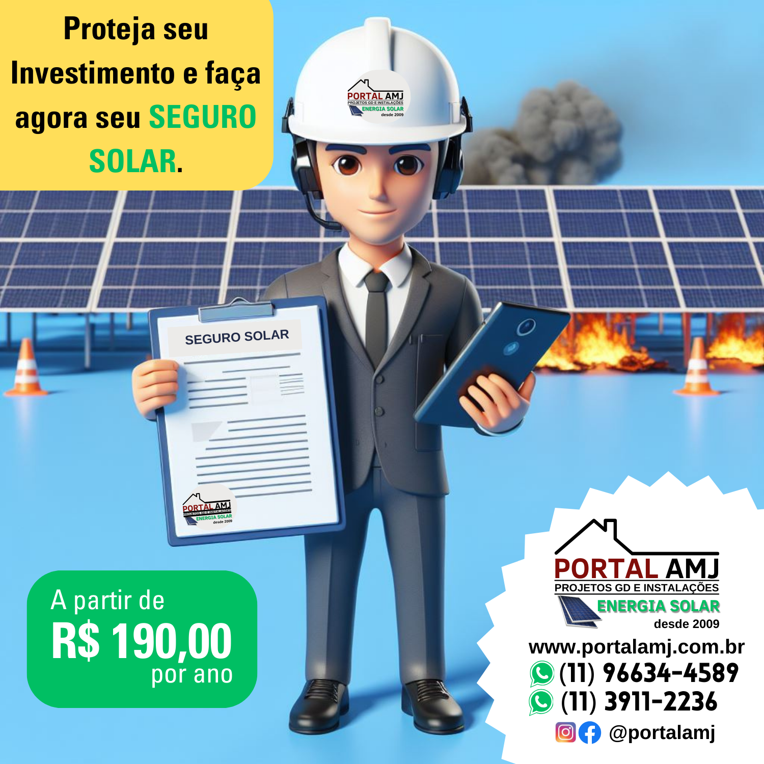 Visite a landing page do Portal AMJ para simular sua economia com energia solar e entre em contato para dar o primeiro passo rumo à sustentabilidade energética.