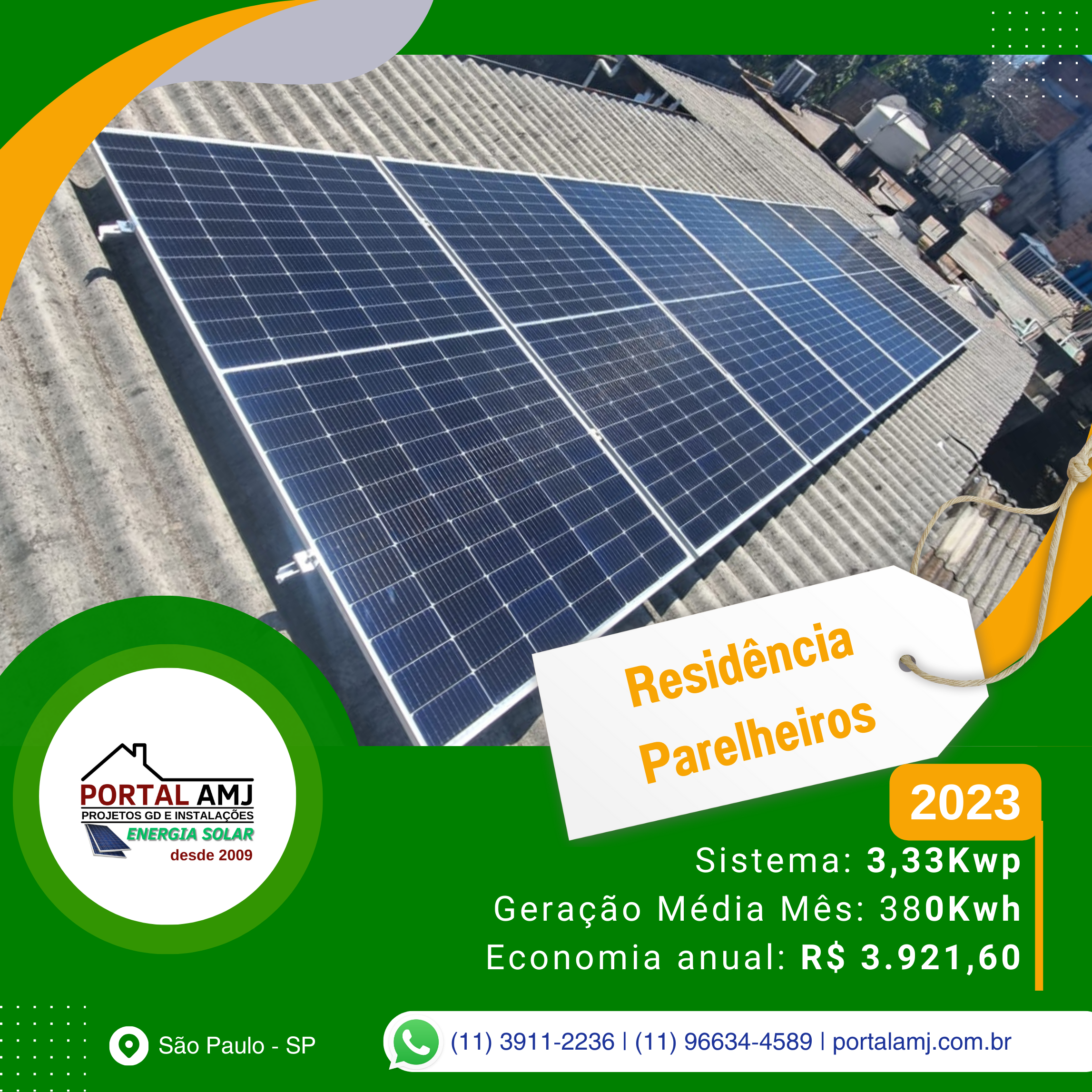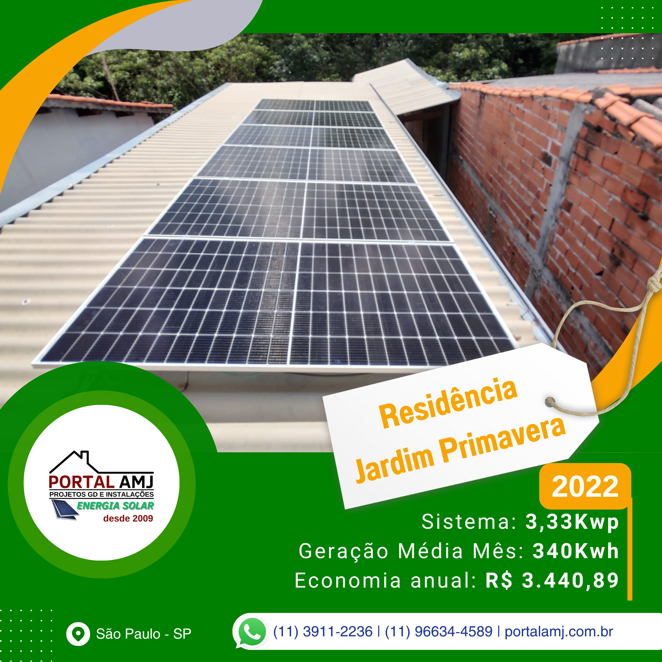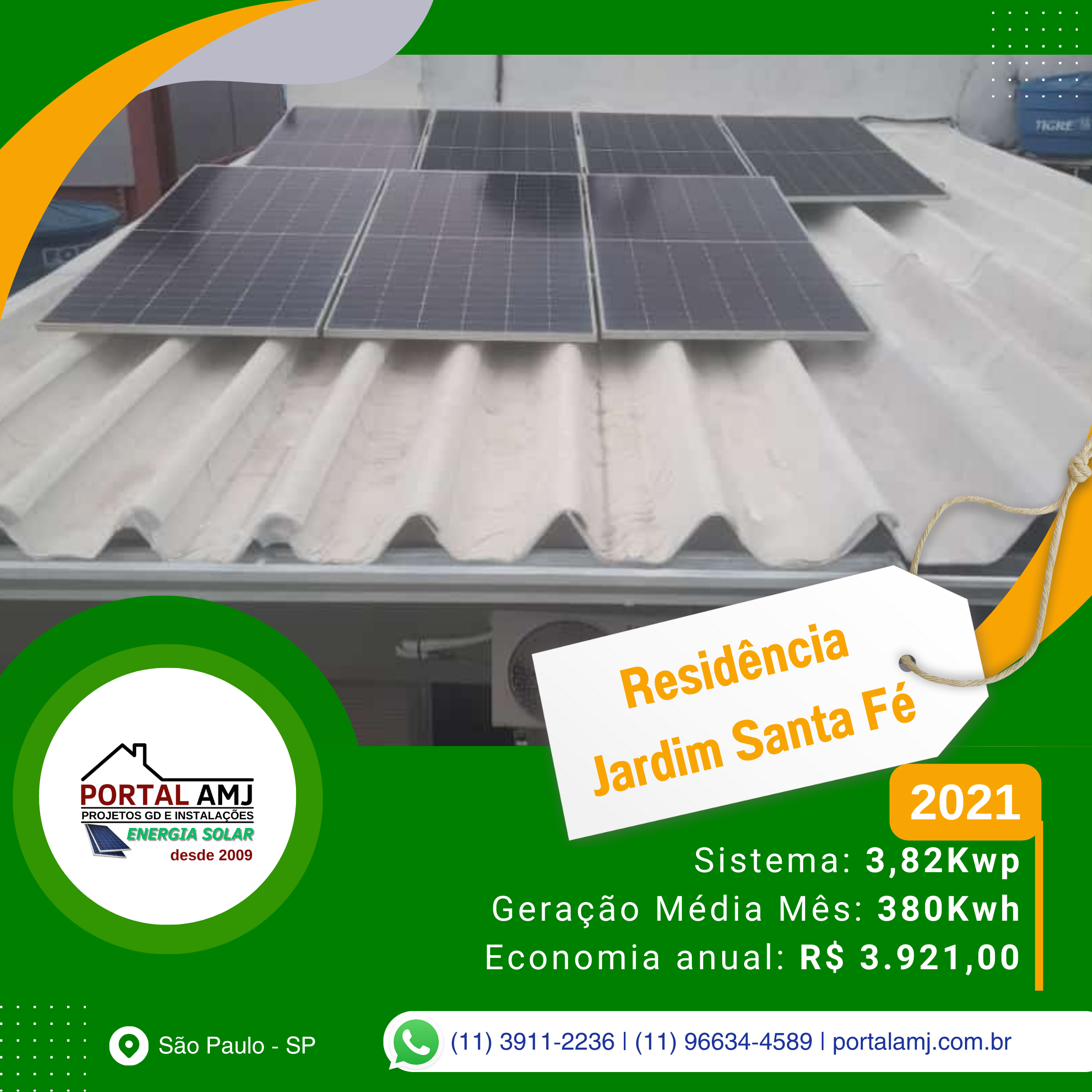 Fundada em 2009, a Portal AMJ Solar emerge como uma vanguarda na revolução da Energia Solar Fotovoltaica em São Paulo, SP, oferecendo uma gama completa de serviços que abarcam desde a consultoria, projeto, homologação, instalação de painéis solares, até soluções de eficiência energética. Nossa sede se localiza estrategicamente na Rua Floriano Alves da Costa, 63 - Jardim Santa Fé (Zona Oeste), São Paulo/SP, permitindo-nos atender a uma vasta área de cobertura, incluindo a metrópole paulistana e seus arredores, alcançando bairros e cidades num raio de até 25km com eficácia e prontidão.