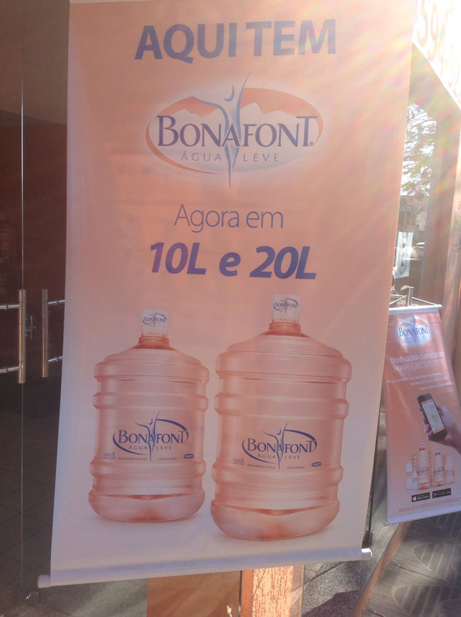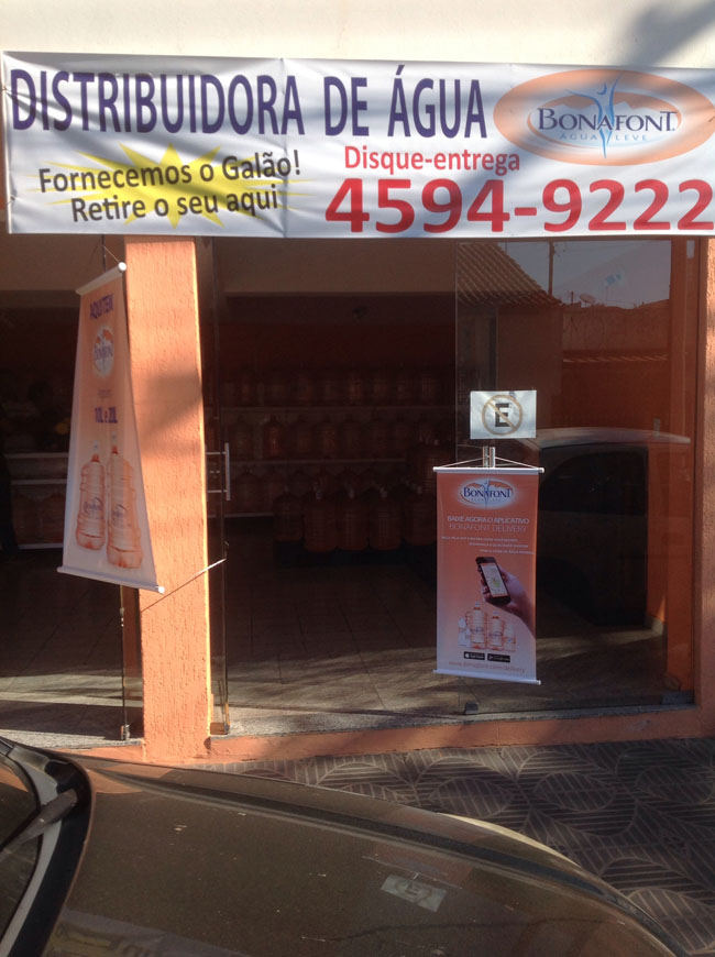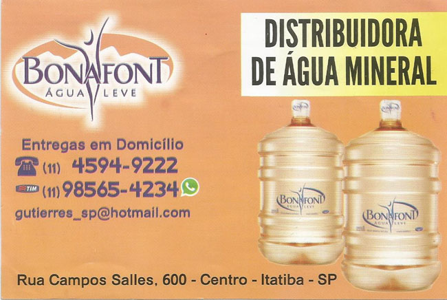 Temos garrafas de 450, 500, 1500 ml, 1,45l de Bonafont Levissé Laranja, Limão e Maçã. Temos também galões de 6, 25, 10, 20 Litros. Aberto de segunda à sexta das 08:00 ás 18:00 hrs e aos sábados das 08:00 ás 14:00 hrs.