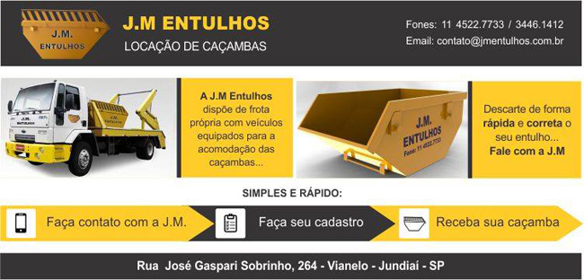 Empresa de aluguel de caçambas, ótimo atendimento e preço justo! Melhor preço da região! Faça um orçamento e tenha um serviço garantido! Atendemos Jundiaí, Várzea Paulista e Campo Limpo Paulista.
