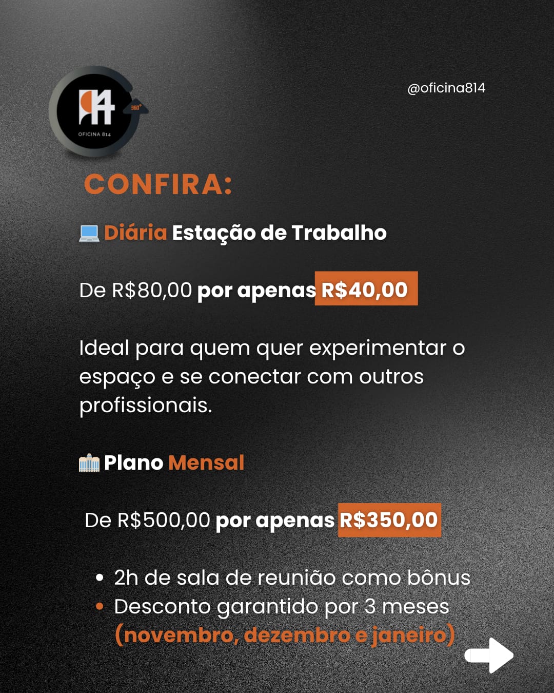 A Oficina 814 é um bureau de negócios que auxilia você a chegar ao seu cliente alvo, proporcionando um relacionamento direto e eficiente. Oferecemos um espaço moderno e colaborativo com toda a infraestrutura necessária para o desenvolvimento do seu trabalho e negócios.