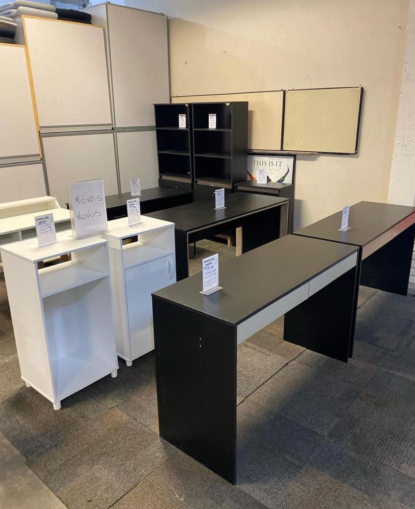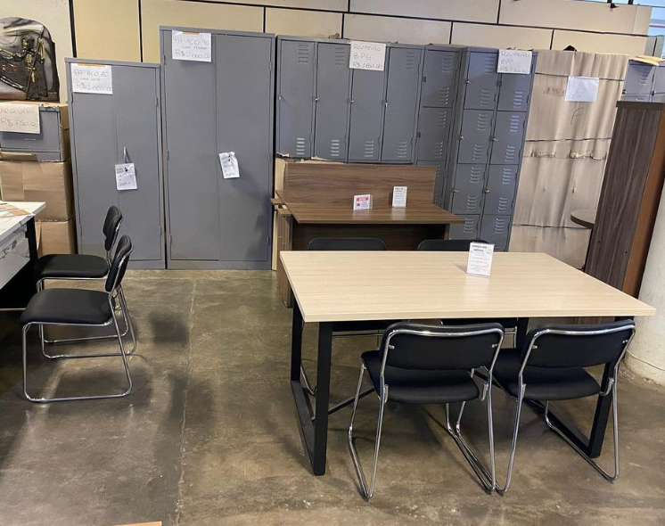 Trabalhamos com mobiliário corporativo, mesas, cadeiras, armários, gaveteiros, roupeiros, arquivos, tanto novos quanto usados.