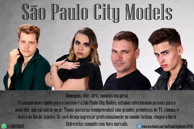 SÃO PAULO CITY MODELS foi fundado em 2008 apenas para projeções regionais da cidade de Marilia/SP e região. Mesmo assim, em namoro com a Cidade Maravilhosa Rio de Janeiro, realizou a figuração da novela Global MORDE E ASSOPRA com modelos da época. Levou atores e atrizes para reuniões e testes na TV Globo e TV Record. Encenou peças, entre elas de maior sucesso a comédia musical BIG SPENDER (O Grande Explendor) magnificamente estrelada por Stephanie Garcia, Carlos Gonçalves, Jaqueline Freitas, Vinicio Misael, Michel Errera, Ricardo Capeline, Bruna Ariadines, Rafael e Carol Diniz...entre outros.