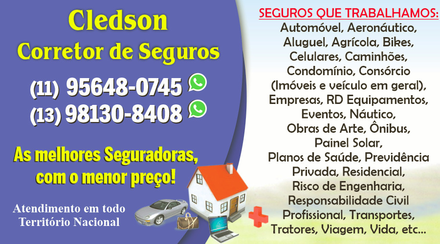 Cledson Corretor de Seguros trabalha com as melhores seguradoras e com o menor preço do mercado.