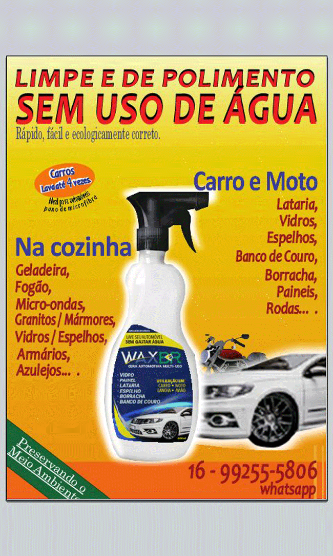 WAXBR um produto inovador e moderno que lava a seco, automóveis, uso doméstico, utensílios de escritório e limpezas em geral.
