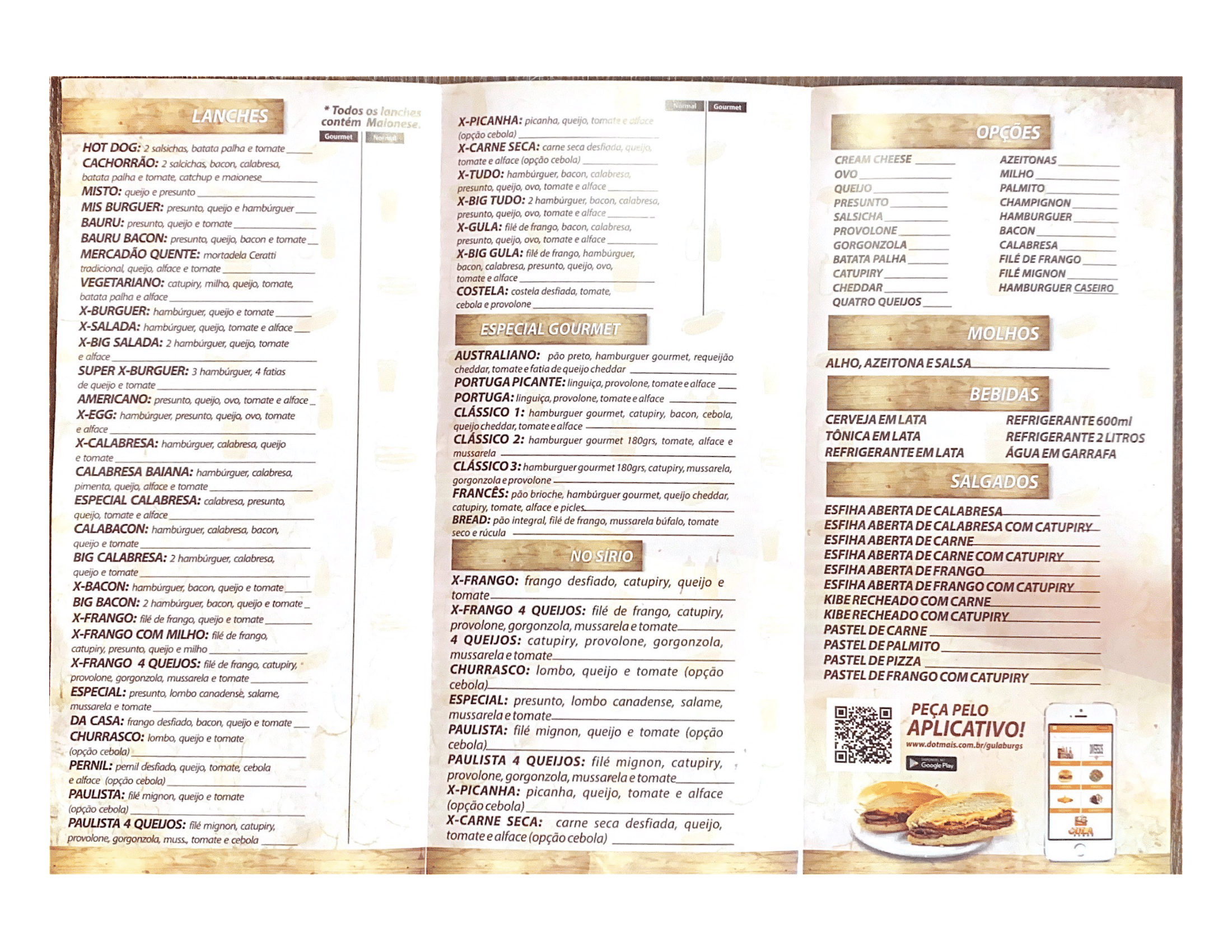 Na Gula Burgs, nós valorizamos o atendimento de qualidade, o respeito ao cliente e, claro, o sabor inigualável de cada prato que servimos. Nosso compromisso é trazer o melhor da culinária de lanches e porções para a sua mesa, com preços justos e um ambiente descontraído, sem deixar de lado a eficiência e a agilidade no atendimento.