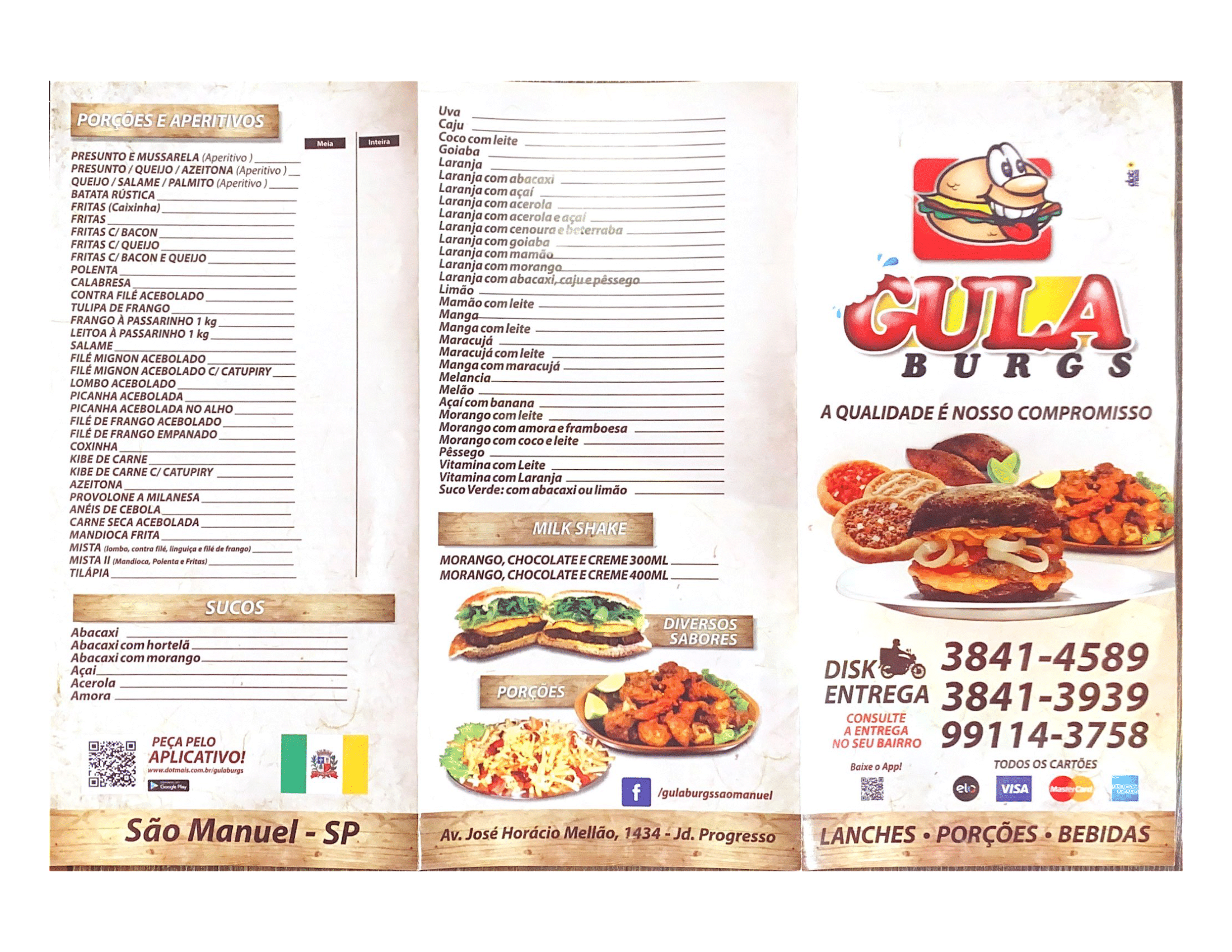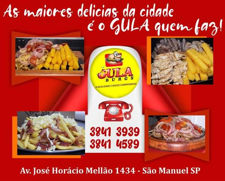 Se você está em São Manuel ou arredores e busca um local onde a comida é sempre fresquinha, saborosa e servida com simpatia, a Gula Burgs é a melhor escolha!