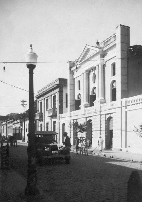 Descrição: Construído como theatro em 1886, em 1927 após reforma, ganhou a fachada neo- clássica. A arquitetura externa do prédio era, e ainda o é, imponente, com suas belas colunas e sacadas, e a fachada, adornada no seu ponto mais alto com uma pequena torre onde sobressaia uma pequena janela voltada para a rua. Um verdadeiro teatro, numa, então próspera, cidade do interior de Minas. Palco de espetáculos teatrais, cinematográficos, musicais, cantores, atores, etc., foi lá, conforme seu depoimento, que Dercy Gonçalves participou da sua primeira apresentação nos palcos.