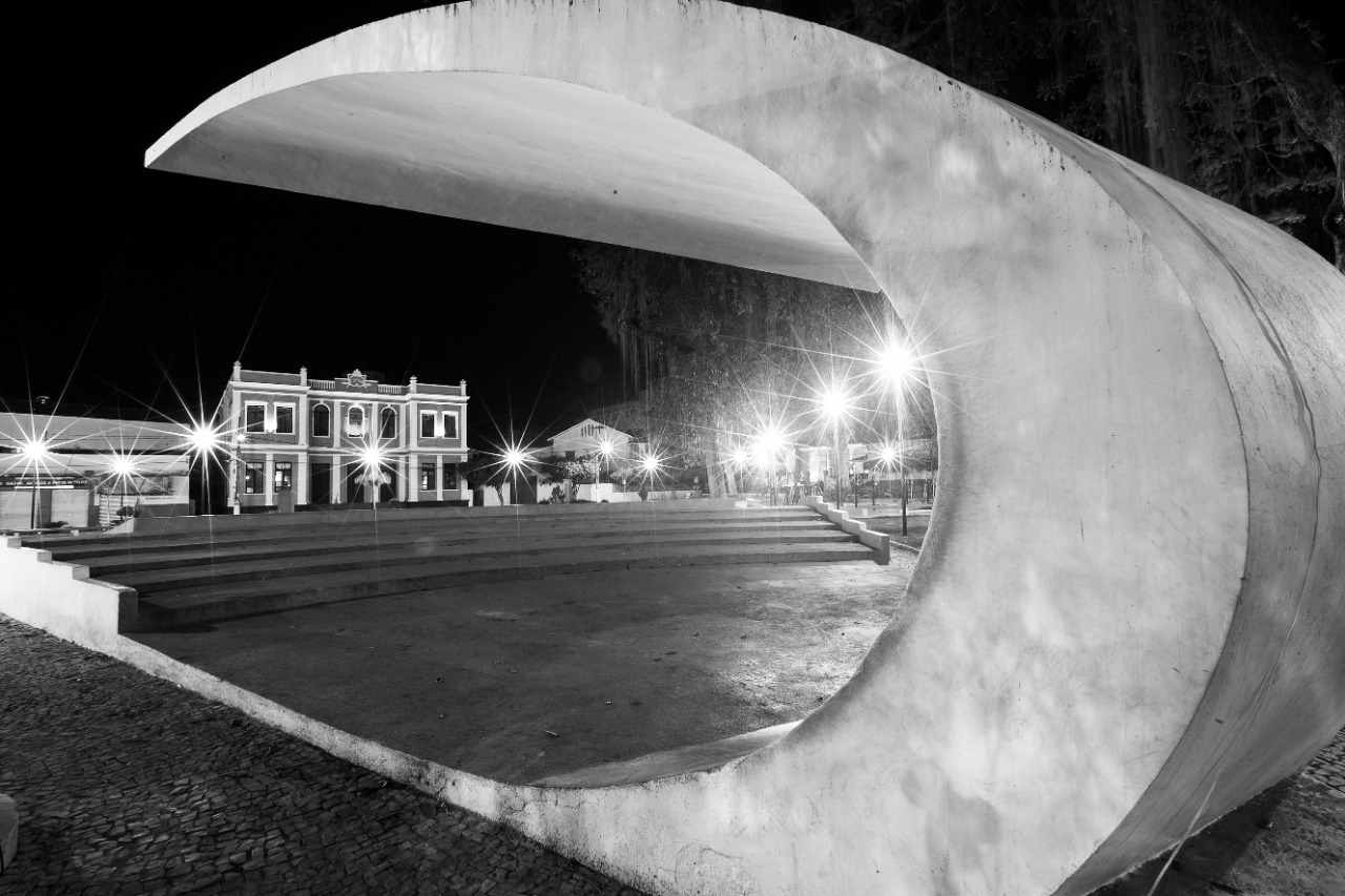 Descrição: Em 1962, no governo de Zequinha Reis, construiu-se a concha acústica e na administração do prefeito Dr. Joaquim Furtado Pinto, patrocinado pelo Lions Clube da cidade, recebeu o mural de Funchal Garcia e outros melhoramentos. Na reforma ocorrida na década de 1960, suprimiu-se um antigo coreto, de tão belas lembranças, onde apresentavam-se bandas e as crianças brincavam sob as vistas de seus pais.