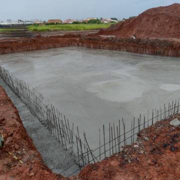 Concretagem do fundo da piscina de decantação.