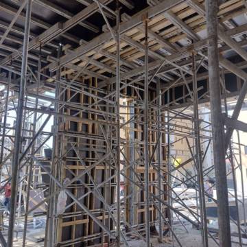 Estrutura em concreto armado e escoramento metálico: Segurança e eficiência na construção.