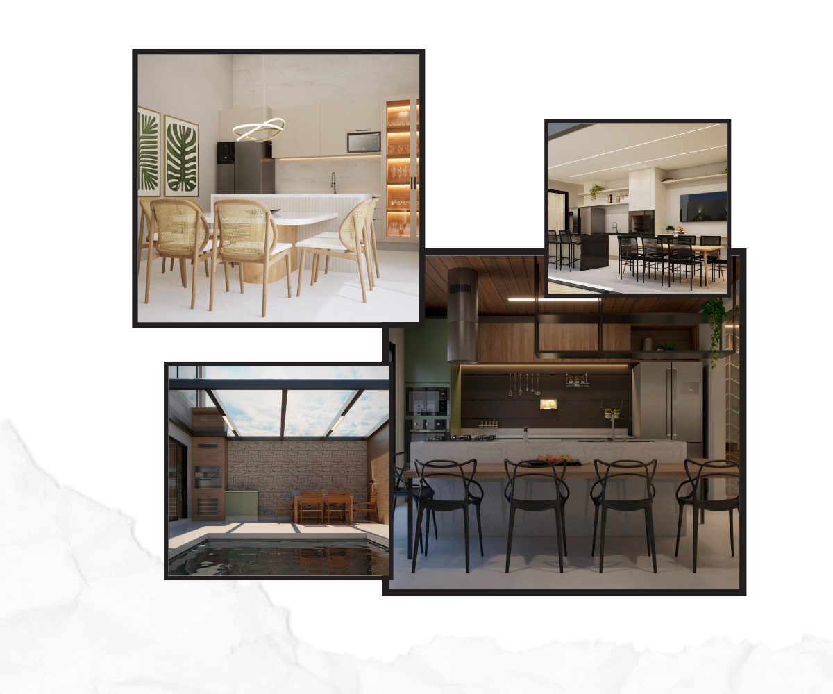 - Ambiente Privativo e Versátil: A área gourmet pode ser projetada como um espaço exclusivo para confraternizações e encontros, sem interferir na rotina da cozinha.